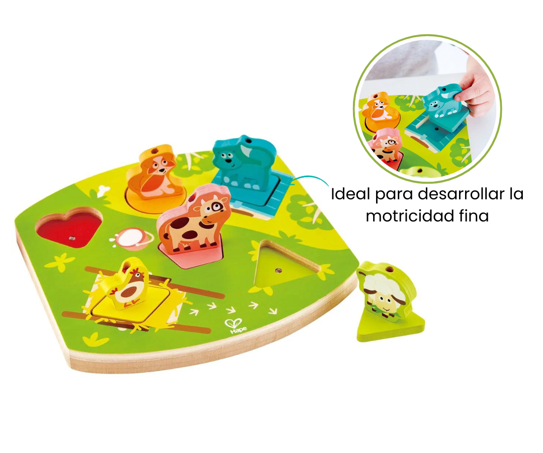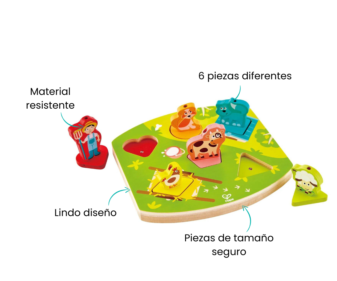 Cada pieza emite el sonido de corral correspondiente cuando se coloca en la posición correcta en el tablero.