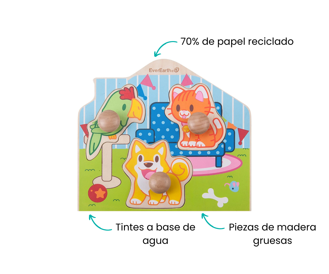 Este rompecabezas de mascota, está fabricado con un 100 % de madera de haya FSC sostenible. Este cautivador juguete está cuidadosamente diseñado para nutrir las habilidades de coordinación mano-ojo de los niños, mientras exploran el emocionante mundo de las mascotas.