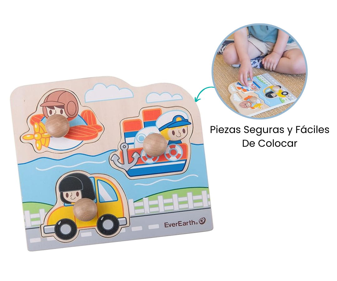 Descubre la diversión educativa con el puzzle de madera de 3 piezas, decorado con encantadores motivos de transporte. Diseñado para promover la motricidad fina, la concentración y la paciencia en los más pequeños, este rompecabezas es ideal para el desarrollo cognitivo temprano. Los niños disfrutarán de horas de entretenimiento mientras aprenden sobre diferentes medios de transporte y mejoran sus habilidades motoras.