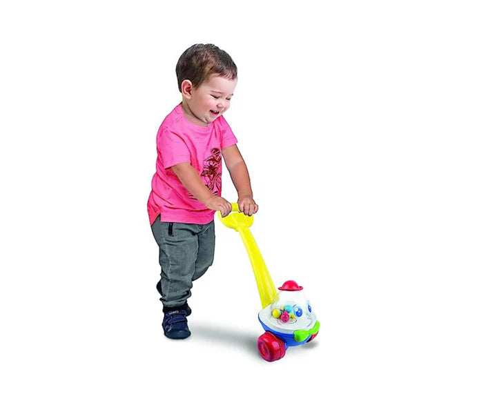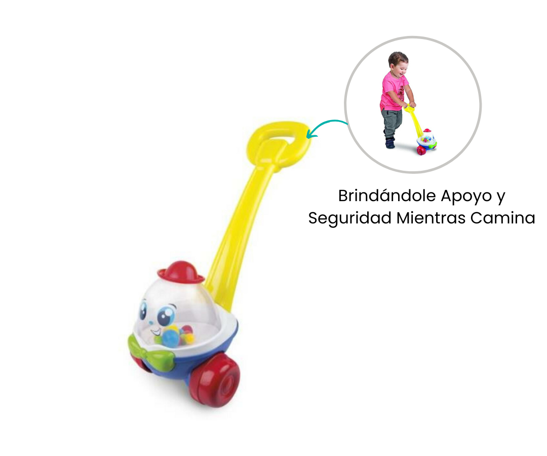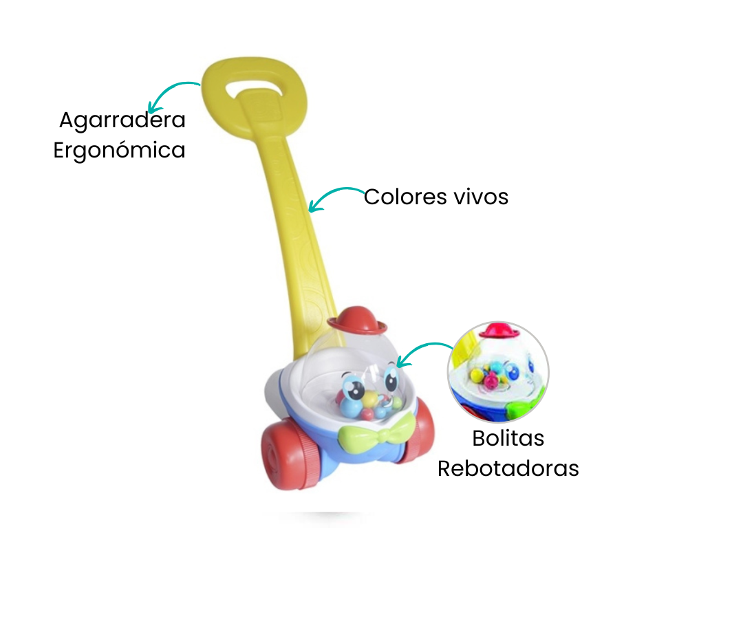 Al empujarlo, las bolitas de colores en la parte superior transparente giran y saltan, capturando la atención del pequeños.