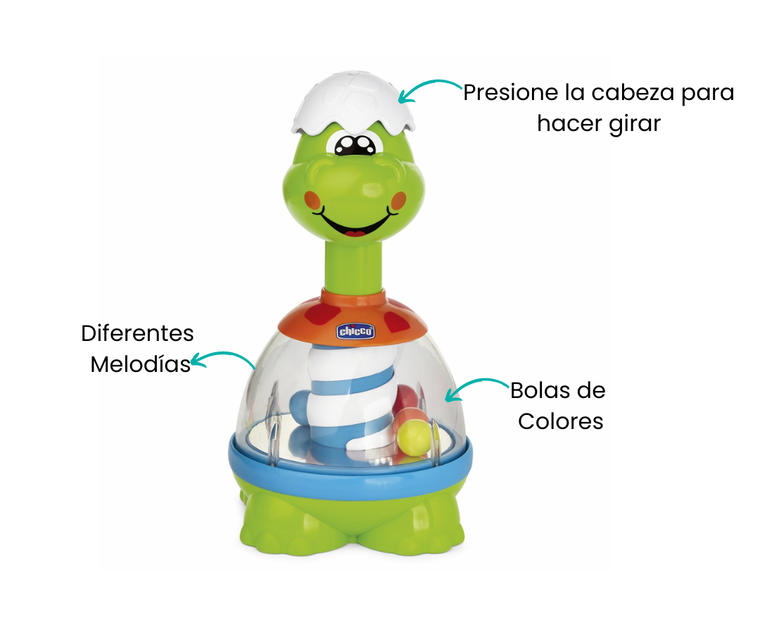 Este juguete encantador tiene la apariencia de un simpático dinosaurio que cautivará a niños y niñas por igual. Además de su aspecto adorable, Spin Dino es una herramienta perfecta para desarrollar la coordinación manual mientras los pequeños juegan con él. Con sus divertidos sonidos y melodías, también contribuye al desarrollo de las habilidades auditivas de los niños. ¡Una opción ideal para aprender y jugar al mismo tiempo.