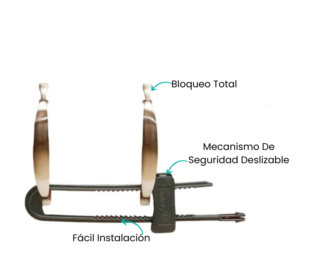 Su instalación es rápida y sencilla, ajustándose a las manijas o perillas de tus gabinetes con facilidad. Con este dispositivo, podrás mantener a tu pequeño seguro y alejado del contenido almacenado en el interior del gabinete, brindándote tranquilidad y seguridad.