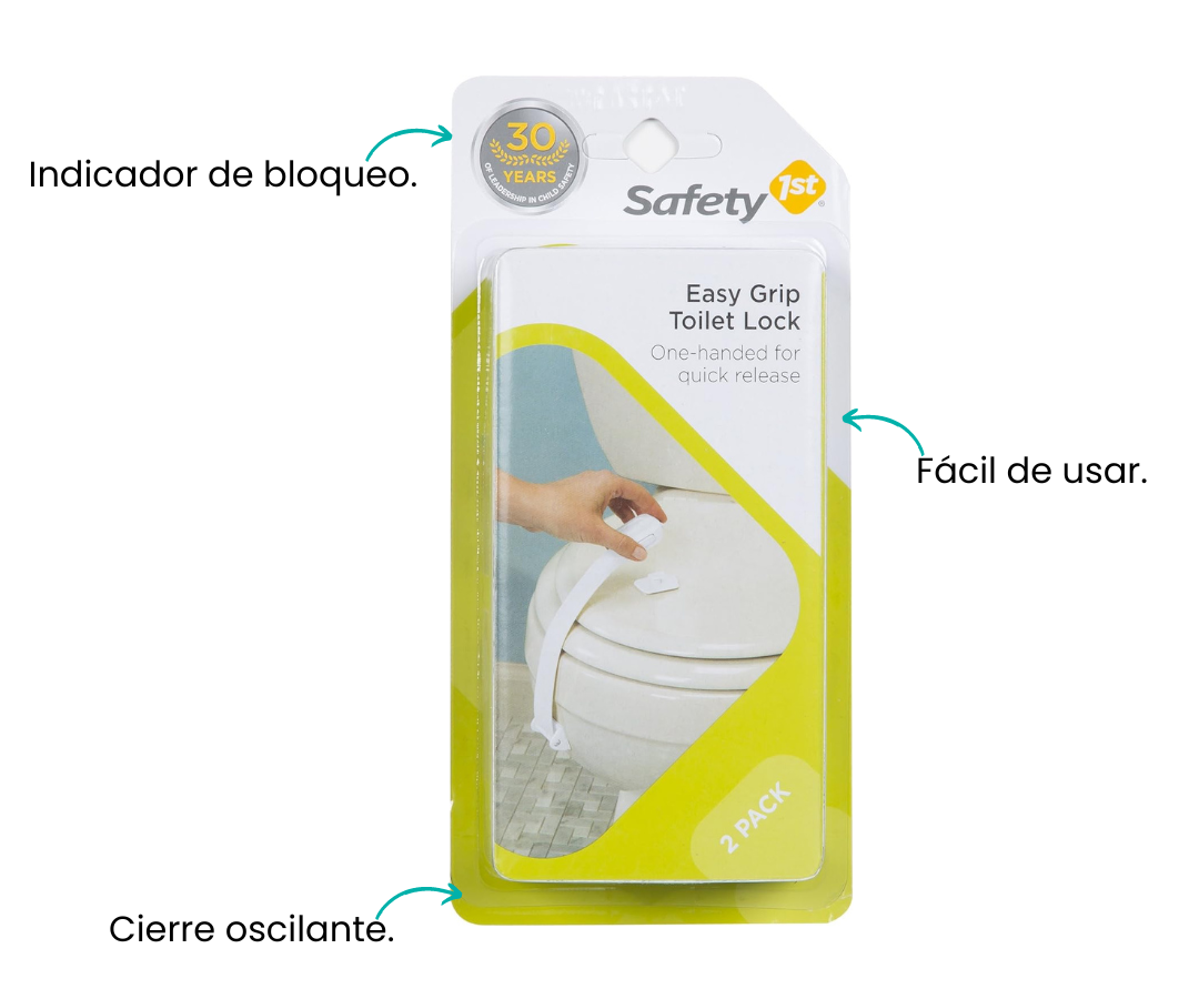 La traba de seguridad para inodoros es una excelente opción para padres para que tu pequeño preocupados por su seguridad en el baño. Diseñada para adaptarse a la mayoría de los inodoros, esta traba cuenta con un respaldo adhesivo que facilita su instalación. Los adultos pueden manejar fácilmente el mecanismo de cierre oscilante con una sola mano, y se vuelve a bloquear automáticamente al bajar la tapa. Además, el indicador de bloqueo SecureTech proporciona una señal clara y fácil de entender, eliminando cualquier duda sobre si el inodoro está seguro o no.