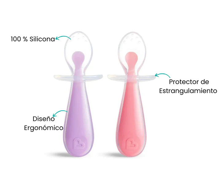 Las cucharas para niños pequeños Gentle Scoop cuentan con una exclusiva función anti-atragantamiento que evita que las cucharas se introduzcan más allá de un punto seguro en la boca y mantiene las puntas fuera de las mesas y los pisos. Lleve la experiencia de alimentación de su pequeño al siguiente nivel con nuestras cucharas Gentle Scoop. ¡La tranquilidad y la limpieza están garantizadas!