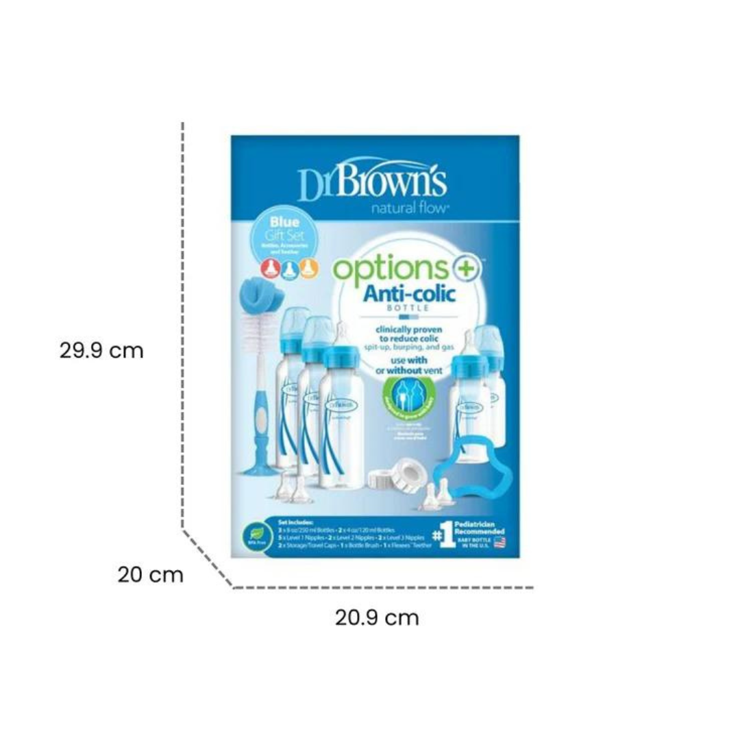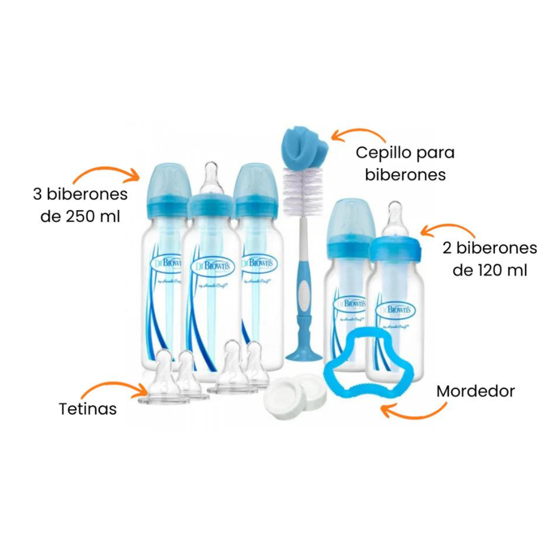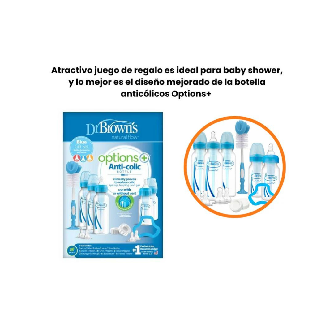 Las opciones del Dr. Brown más el juego de regalo de botella azul anticólicos