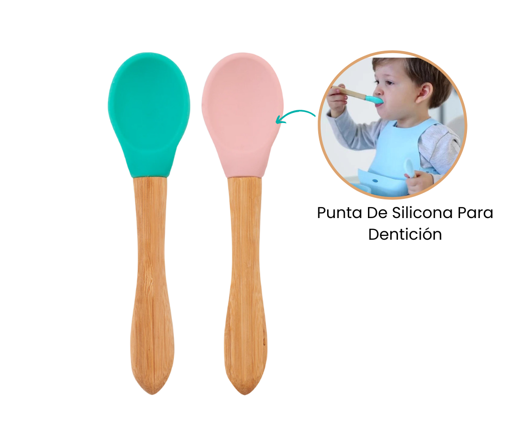 MiniKoioi presenta su innovador pack de 2 cucharas de silicona con mango de bambú, diseñado especialmente para las pequeñas manos de nuestros hijos. Estas cucharas no solo son suaves y seguras, sino que también contribuyen al desarrollo de la motricidad fina de los pequeños. Además, facilitan el inicio de la experiencia de comer con cuchara, convirtiendo cada comida en un paso emocionante en su crecimiento.