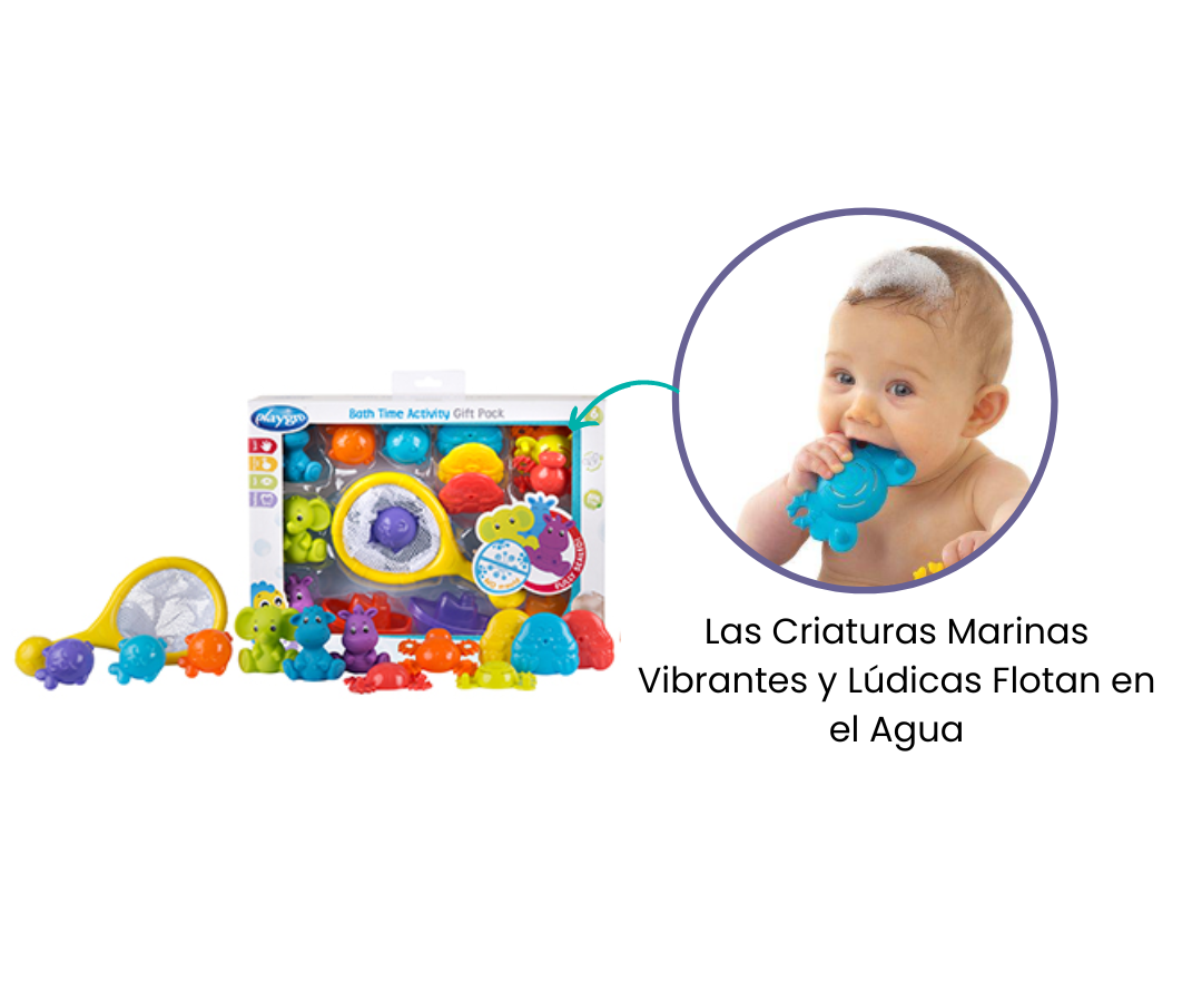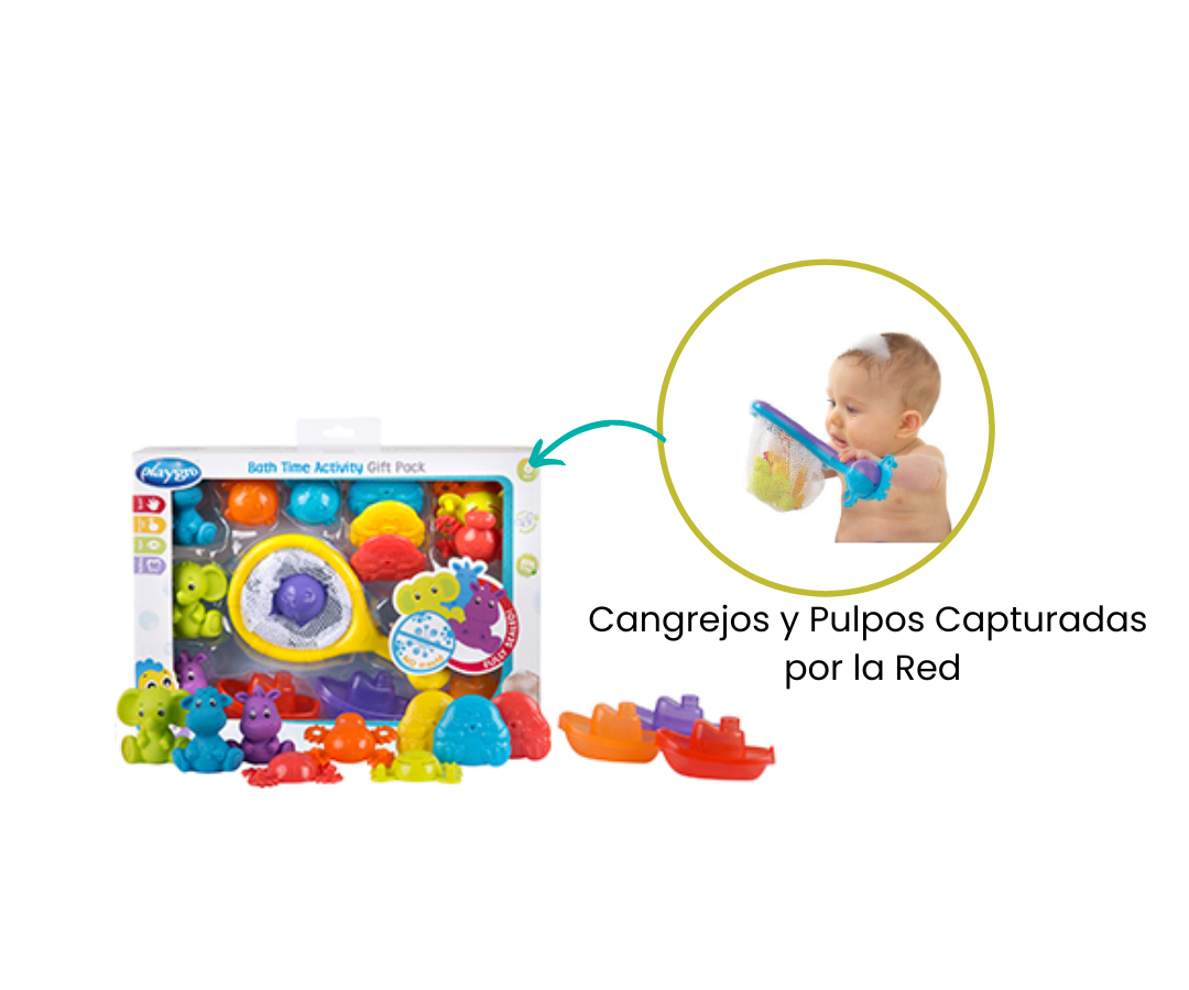 Las criaturas marinas vibrantes y lúdicas flotan en el agua, listas para ser "capturadas" por la red. Este set no solo convierte el momento del baño en una experiencia divertida, sino que también estimula la coordinación mano-ojo de tu niño mientras se sumerge en la tarea de pescar.
