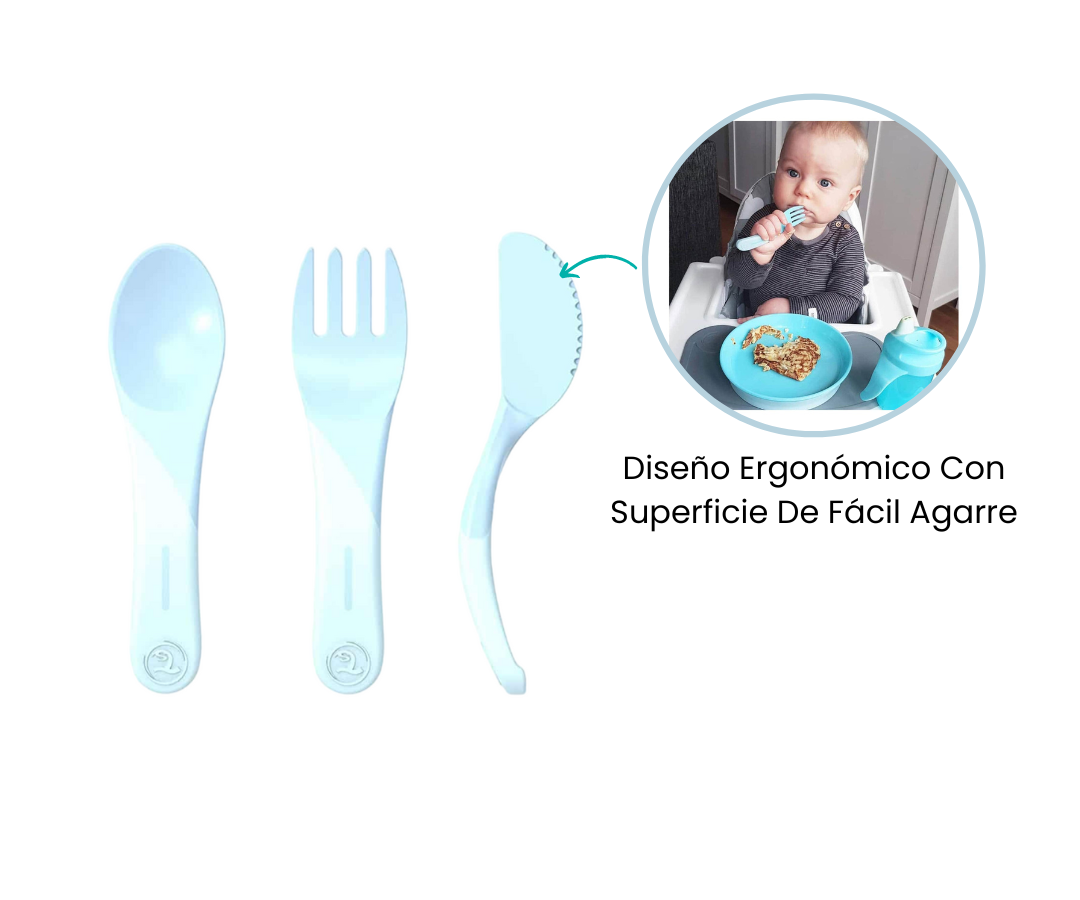 Introduce a tu bebé al mundo de la independencia en la mesa con el completo set de cubiertos de aprendizaje. Diseñados pensando en la comodidad, son cortos y fáciles de usar para tu hijo(a) que está dando sus primeros pasos hacia la alimentación independiente. Estos cubiertos ofrecen la ergonomía perfecta para manos pequeñas, facilitando que tu pequeño(a) disfrute de cada bocado con facilidad.