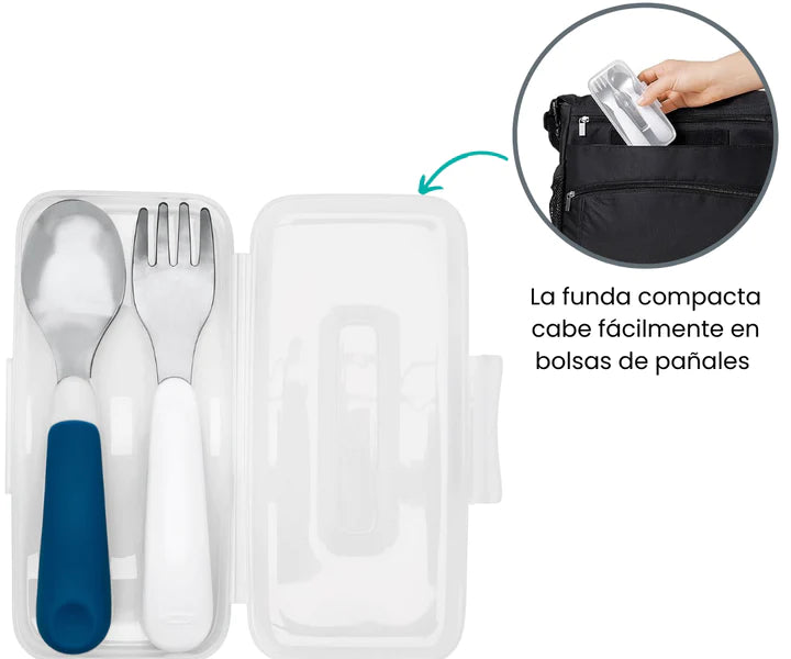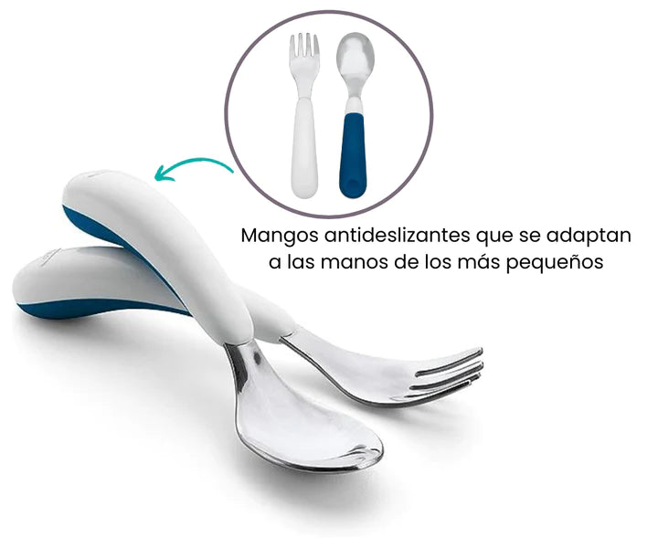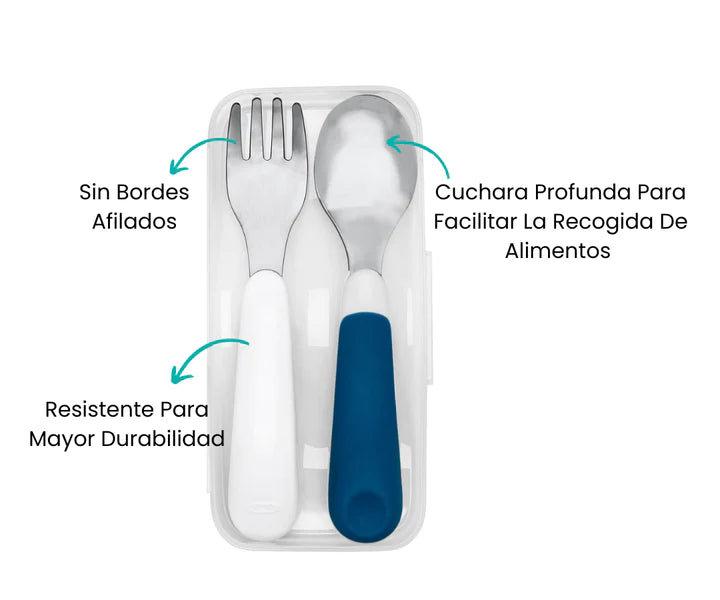 El juego de tenedor y cuchara TEAL ha sido meticulosamente diseñado para brindarte la máxima versatilidad en cualquier situación. Ya sea que estés planeando un relajante picnic al aire libre con tu bebé o estés preparándote para enviarlo a la escuela, este juego está listo para acompañarte en todas tus aventuras.