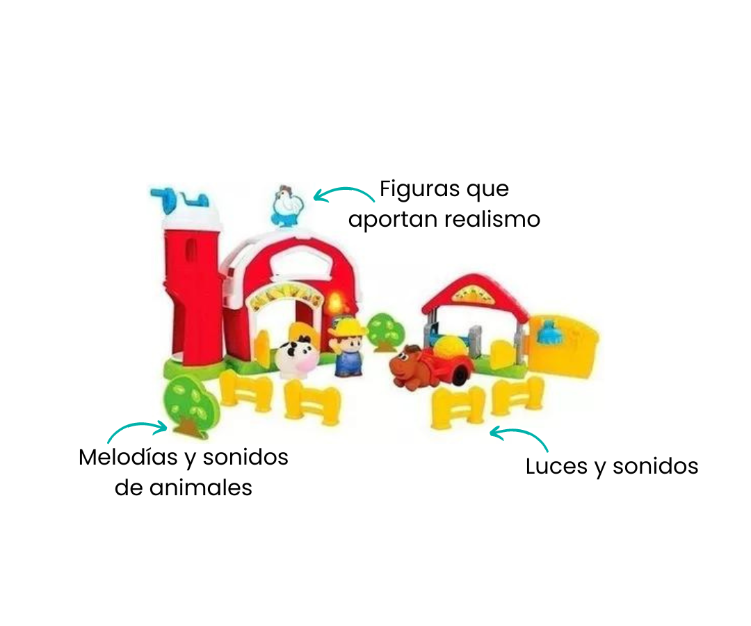 Este juguete de WINFUN ha sido diseñado para desarrollar la imaginación, la comprensión causa - efecto, el aprendizaje y la afectividad de los niños. Tiene distintas figuras que le dan mayor realismo a la escena.