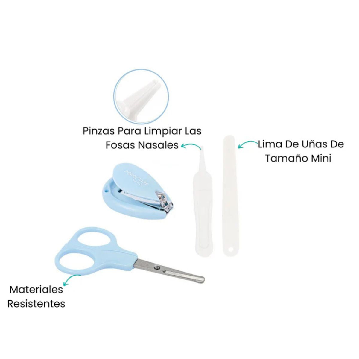 Cada herramienta del set de manicure Sevibebé ofrece un agarre cómodo para los padres y un uso delicado y seguro para los más pequeños. Su diseño práctico permite cortar y cuidar las uñas del bebé con total precisión, sin generar molestias. Además, es un set compacto y fácil de llevar, ideal para tener siempre a mano en casa, en la pañalera o durante los paseos. Una solución confiable y funcional para el cuidado diario de tu bebé.