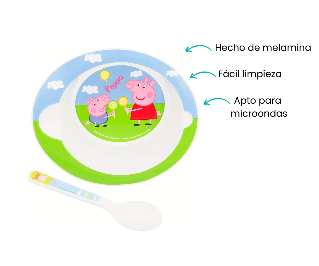 ncluye: cuenco y cuchara Apto para microondas Material: Polypropileno - Producto oficial de Peppa Pig Licencia 00% original Edad minima recomendada: a os