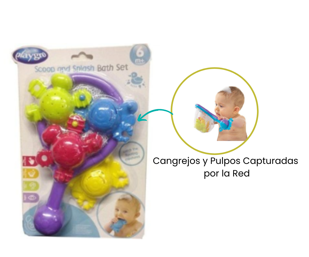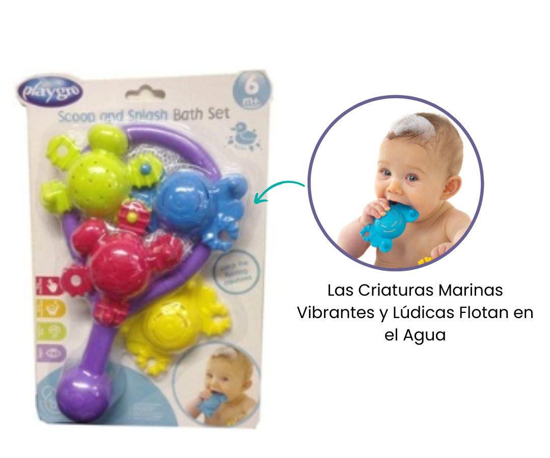Las criaturas marinas vibrantes y lúdicas flotan en el agua, listas para ser "capturadas" por la red. Este set no solo convierte el momento del baño en una experiencia divertida, sino que también estimula la coordinación mano-ojo de tu niño mientras se sumerge en la tarea de pescar.