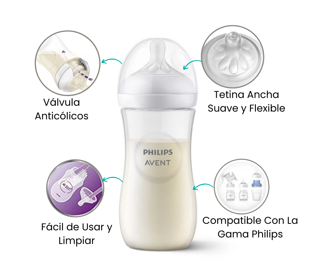Descubre el regalo perfecto con un toque de color para nutrir y tranquilizar a tu bebé. El kit incluye la innovadora tetina Natural Response, que permite a los bebés succionar a su propio ritmo, emulando la lactancia materna. Esta característica facilita la transición entre el pecho y el biberón, proporcionando una experiencia armoniosa y cómoda para los pequeños y simplificando la vida de los padres. Con este conjunto, la alimentación se convierte en un momento alegre y relajado para padres e hijos.