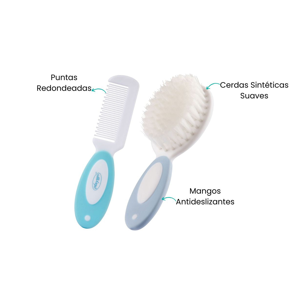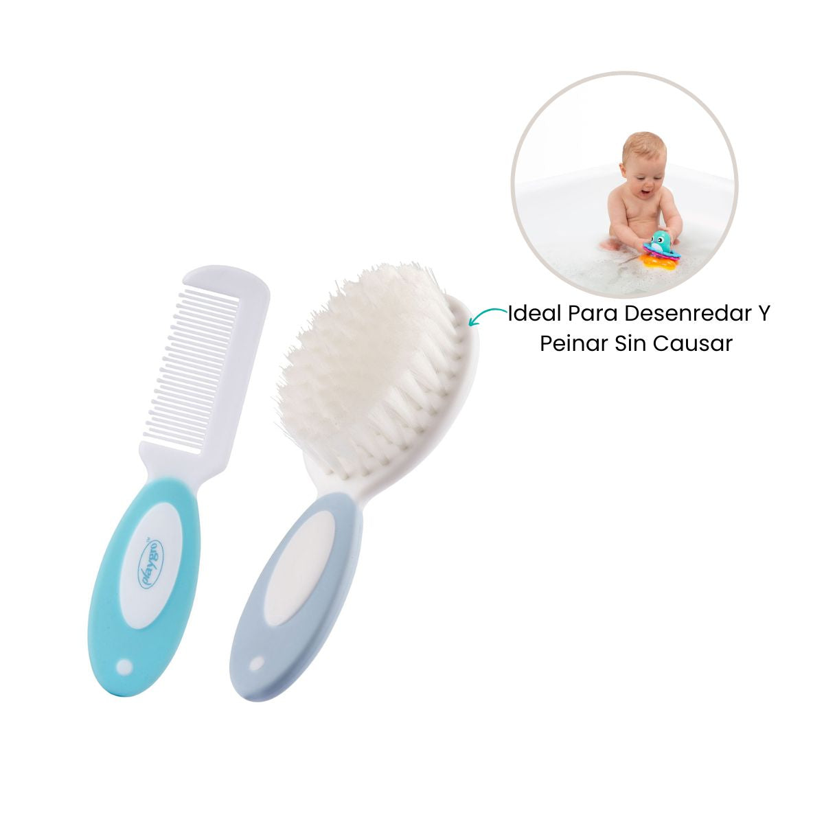 Este set incluye un cepillo de cerdas suaves y un peine de puntas redondeadas, diseñados para cuidar el delicado cabello del bebé sin causar molestias. Sus mangos ergonómicos ofrecen un agarre cómodo y seguro para los padres. Fabricados con materiales libres de BPA, garantizan seguridad y durabilidad. Perfectos para mantener el cabello limpio y ordenado desde los primeros meses.