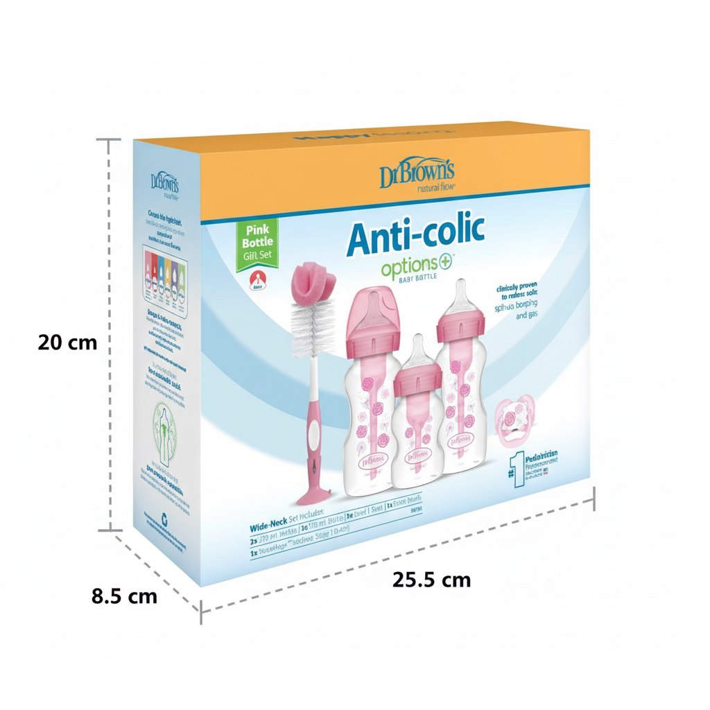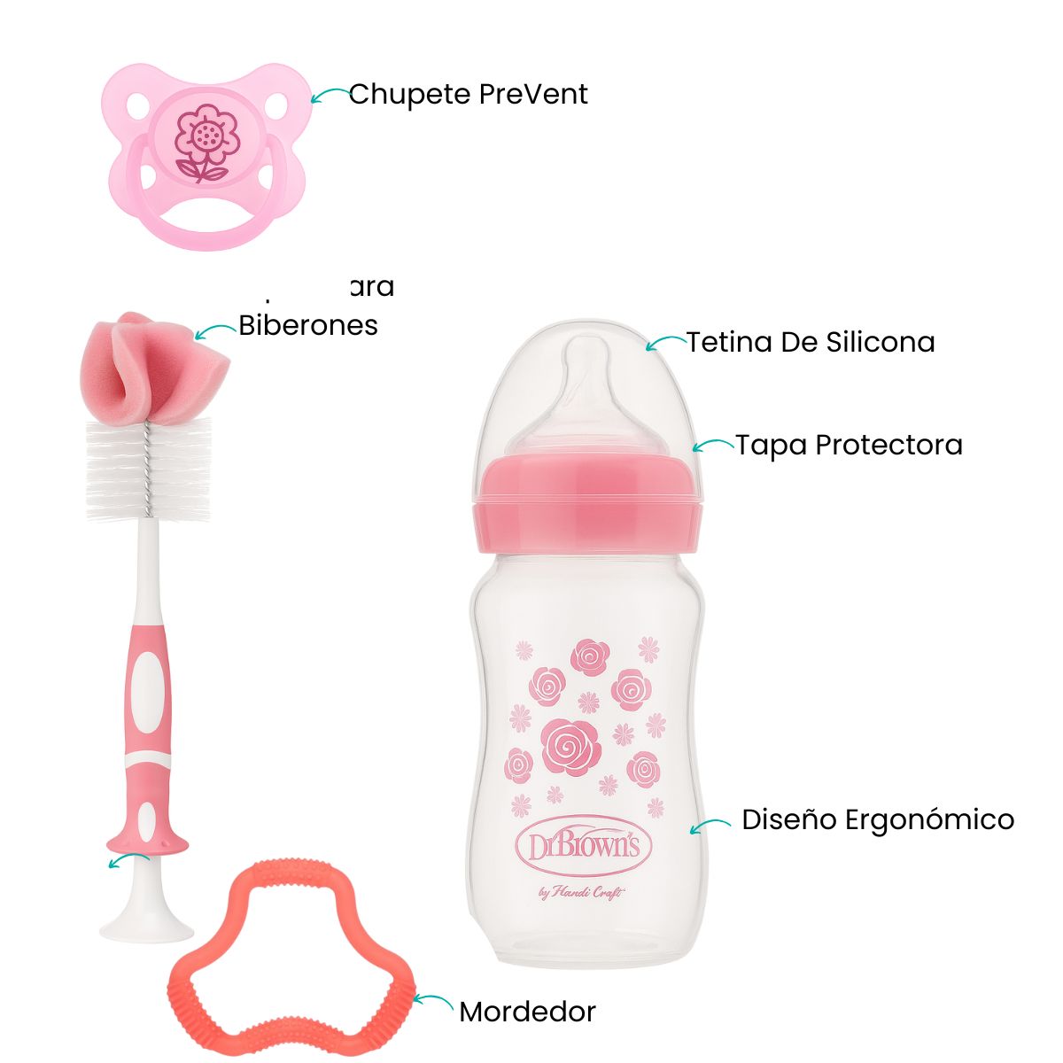 El set de regalo Dr. Brown’s Options+ rosa combina estilo, funcionalidad y bienestar para tu bebé. Su exclusivo sistema anticólicos 100 % libre de vacío reduce molestias, gases y regurgitaciones, garantizando una alimentación más natural y tranquila. Gracias a su diseño versátil, puede usarse con o sin el sistema de ventilación interna, adaptándose al crecimiento del pequeño. Ideal desde el nacimiento, este set es la opción perfecta para quienes buscan comodidad, salud y elegancia en cada toma.