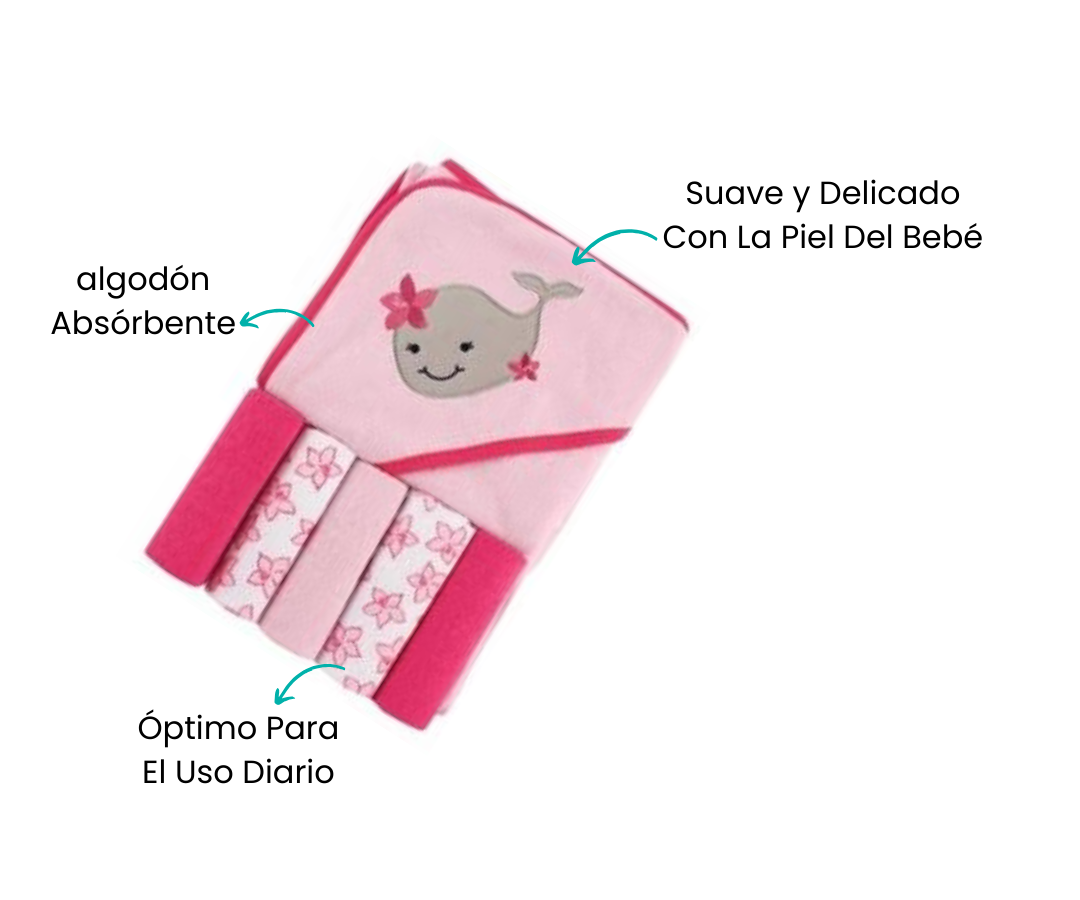 Set Toalla Y 5 Toallitas Ballenita Cute And Joy