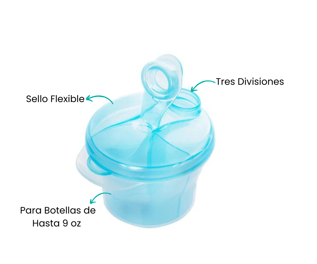 • Tres divisiones para contener la fórmula premedida, para botellas de hasta 9 oz.
