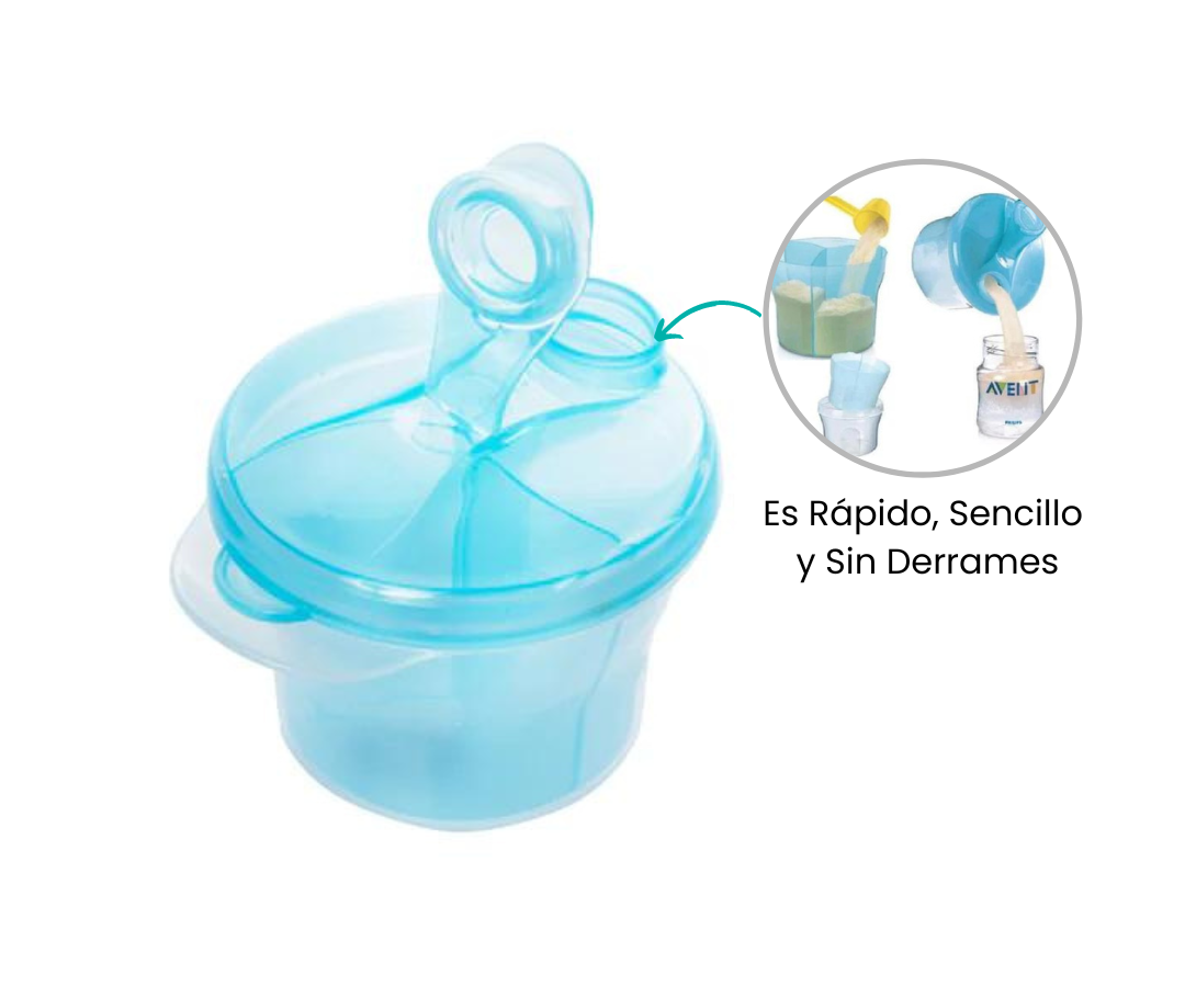 El Dispensador de fórmula está diseñado para simplificar su vida. Tiene compartimentos separados que le permiten llevar la cantidad exacta de fórmula que su bebé necesita para cada toma, evitando el desperdicio y las molestias de llevar bolsas de fórmula voluminosas. Ya no tendrá que medir y cargar en medio de un paseo o en un restaurante abarrotado. Solo necesita abrir el compartimento correspondiente y verterlo directamente en el biberón. ¡Es rápido, sencillo y sin derrames!