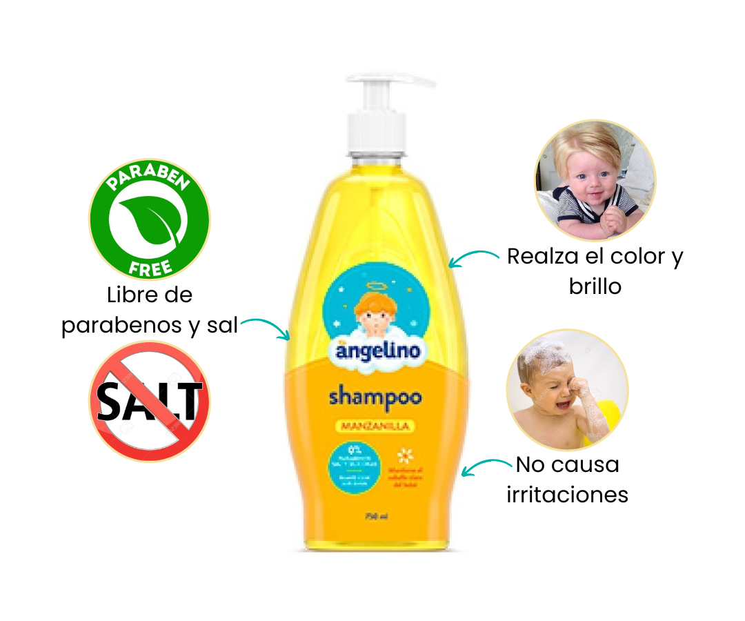 Descubre el Shampoo de Manzanilla, una fórmula especialmente diseñada con extracto de manzanilla para cuidar y realzar el color y el brillo de los cabellos claros de tu bebé. ¡Sin cloruro de sodio añadido para un cuidado aún más suave y seguro!.