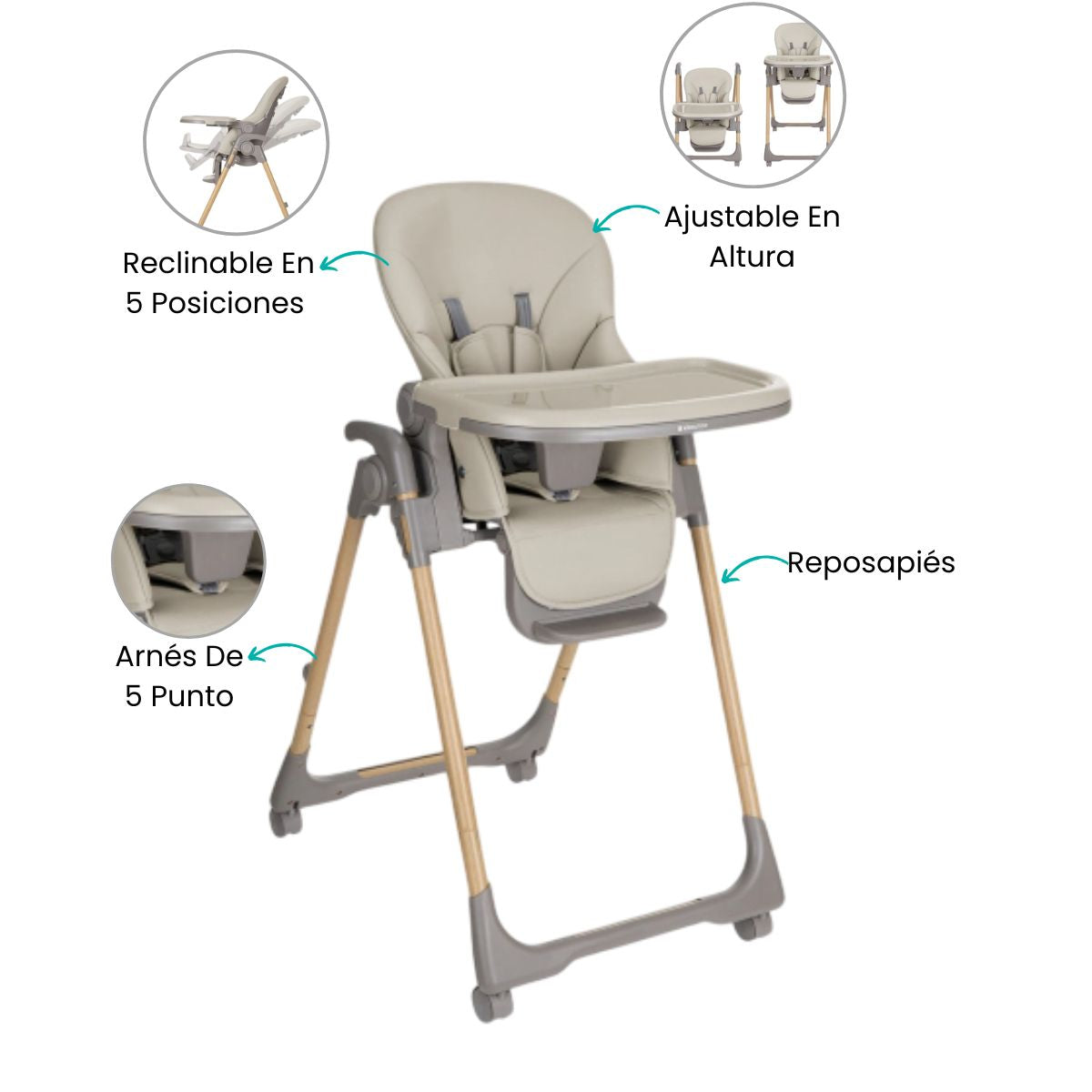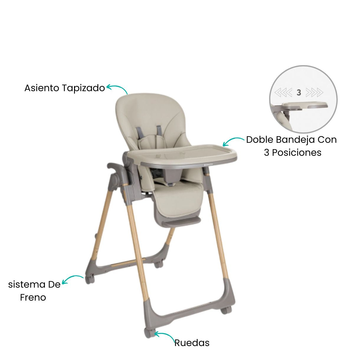 Este asiento alto acompaña al bebé desde que puede sentarse por sí mismo, entregando apoyo ergonómico, seguridad en cada bocado y facilidad de uso a los padres. Es ideal para rutinas familiares donde compartir la mesa se vuelve algo natural, sin prisas y con tranquilidad, sabiendo que el niño está bien sujeto y cómodo.