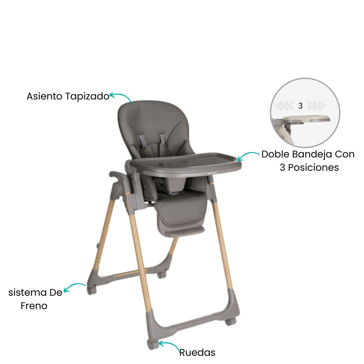 Este asiento alto acompaña al bebé desde que puede sentarse por sí mismo, entregando apoyo ergonómico, seguridad en cada bocado y facilidad de uso a los padres. Es ideal para rutinas familiares donde compartir la mesa se vuelve algo natural, sin prisas y con tranquilidad, sabiendo que el niño está bien sujeto y cómodo.