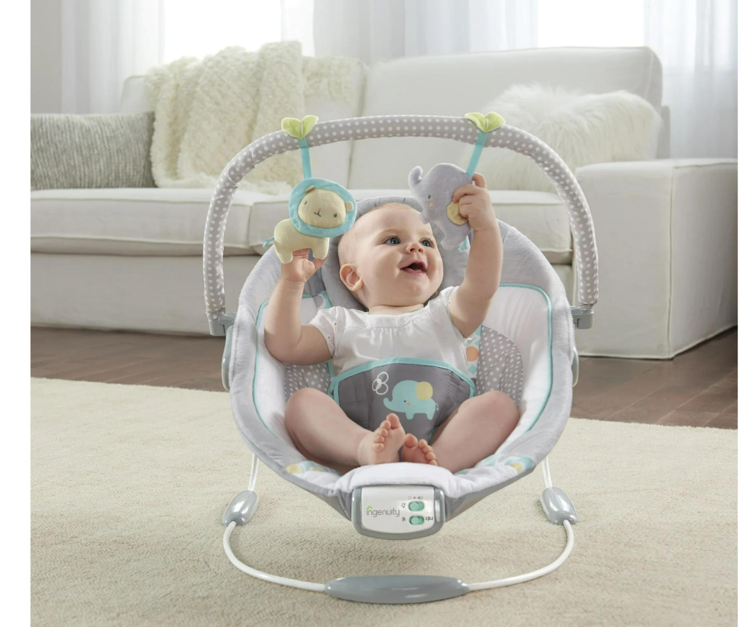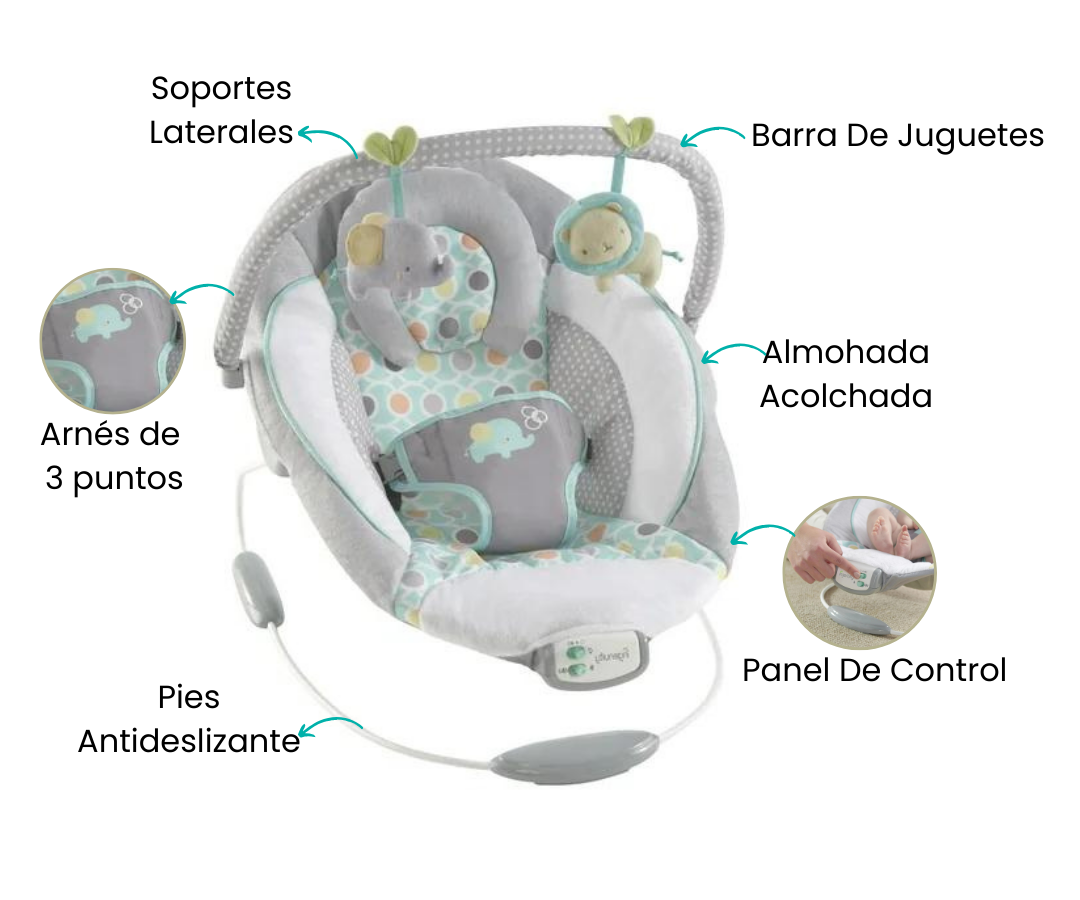 La hamaca calmante Ingenuity Morrison ayuda a calmar al bebé con sus suaves telas de felpa y movimientos de rebote relajantes. Su adorable diseño Morrison complementa perfectamente la decoración de cualquier hogar, siendo ideal para cualquier género.