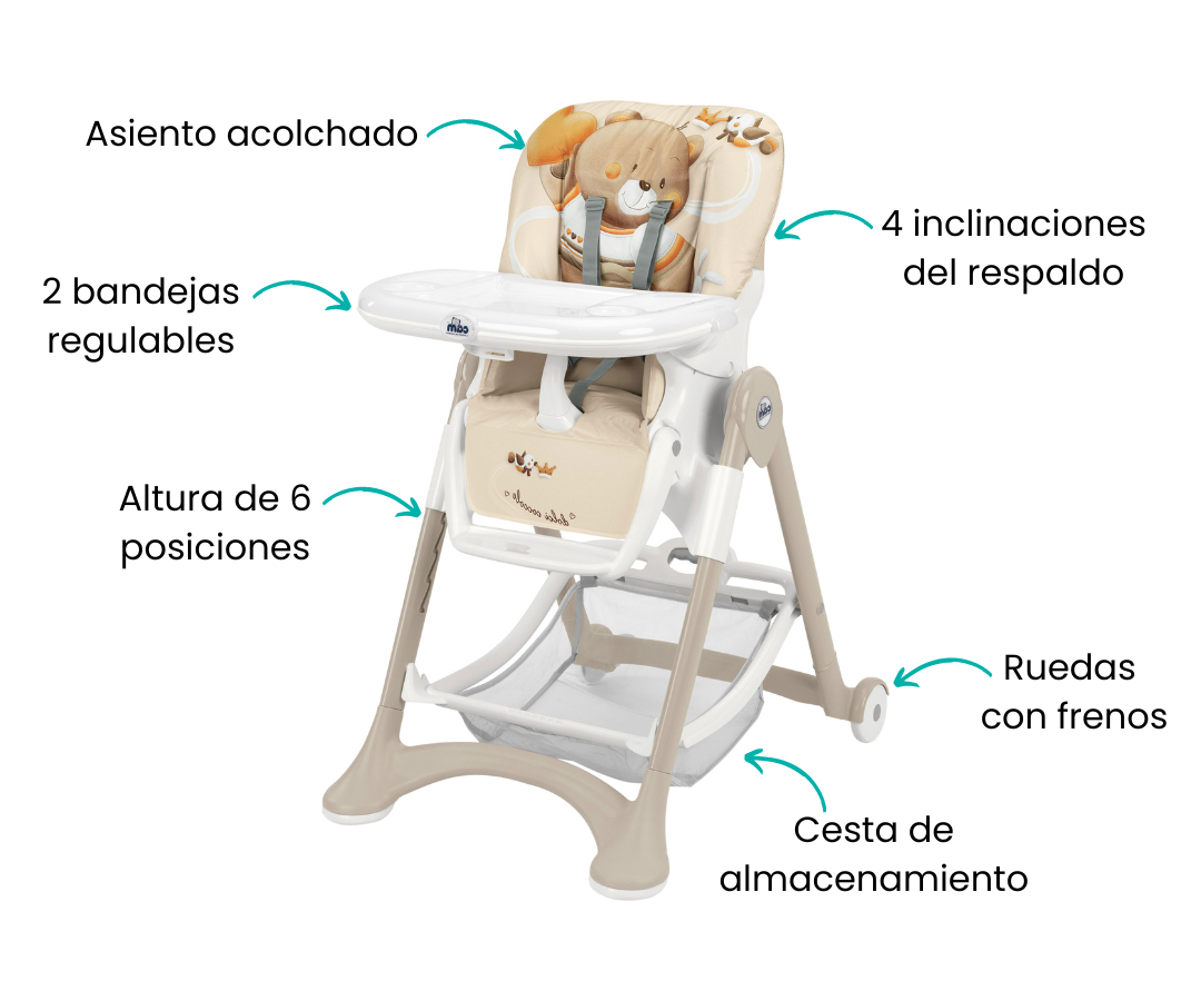 La silla está diseñada para proporcionar a tu hijo comodidad y seguridad durante las horas de comida y juego. Se transforma en una pequeña silla con una sola mano, lo que la hace práctica y conveniente. Además, la función reclinable brinda al niño la oportunidad de disfrutar de una pequeña y reconfortante siesta.