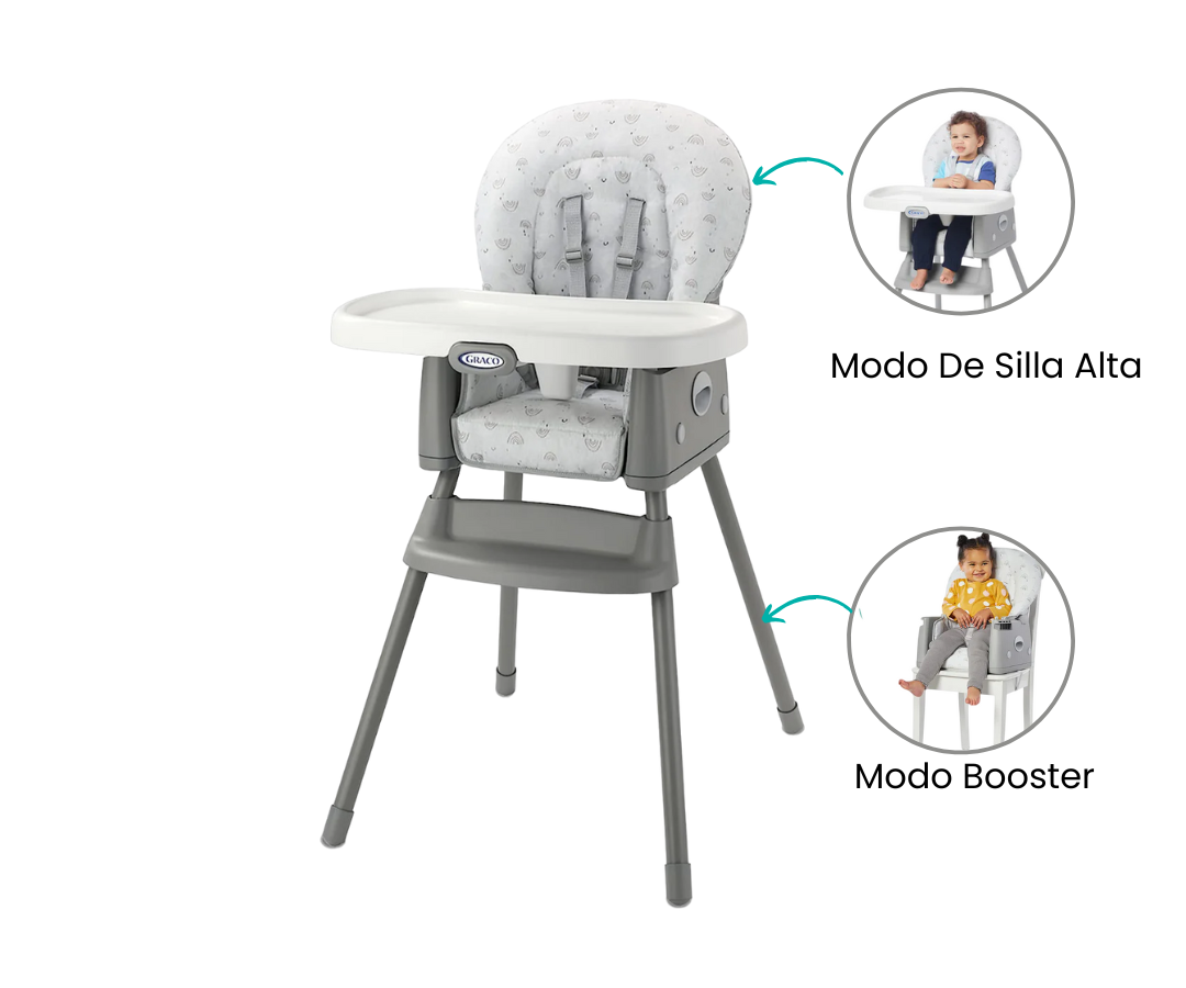 La silla de comer SimpleSwitch™ es un práctico diseño 2 en 1 que crece con tu bebé, desde sus primeros meses hasta que es niño pequeño. Se transforma fácilmente de silla alta a asiento elevador y cuenta con almacenamiento incorporado para las piernas, manteniendo todo organizado. Es la solución perfecta para llevar a tu pequeño a la mesa familiar en cada etapa de su desarrollo.