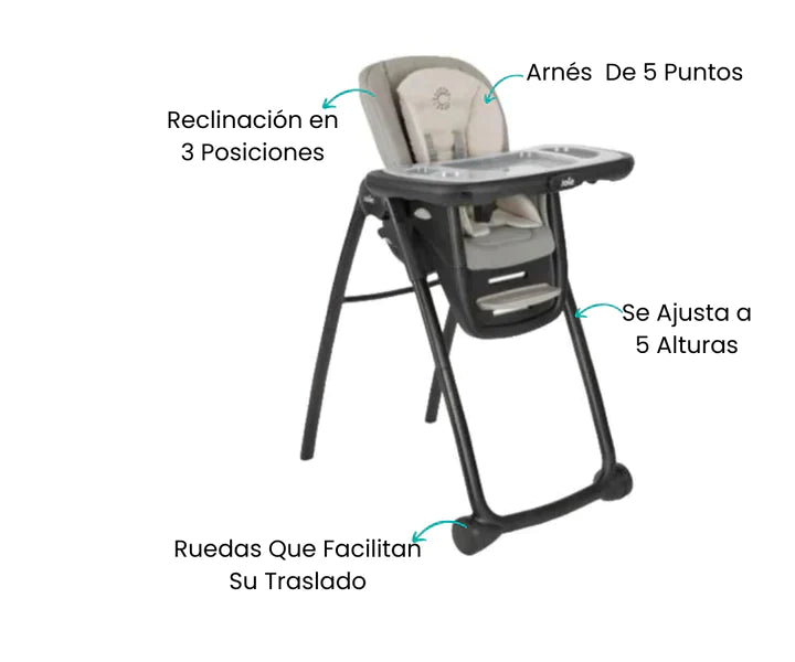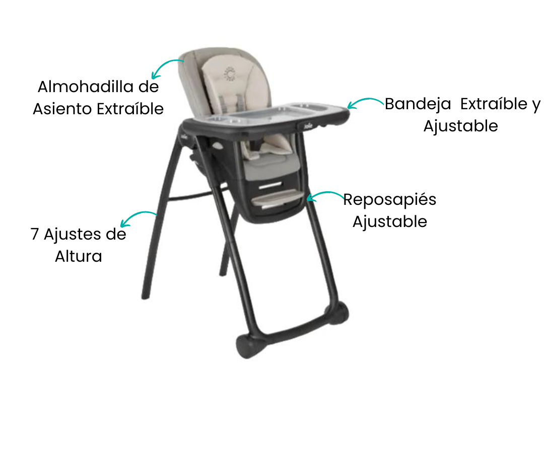La silla reclinable Joie Mimzy te brinda la comodidad y el confort que necesitas a la hora de comer con tu pequeño. Cuenta con 5 posiciones de reclinado, 7 ajustes de altura, 3 alturas de reposapiés y un marco de perfil bajo para que tu y tu bebé estén juntos. También tiene un inserto suave para recién nacido, extraíble y lavable.