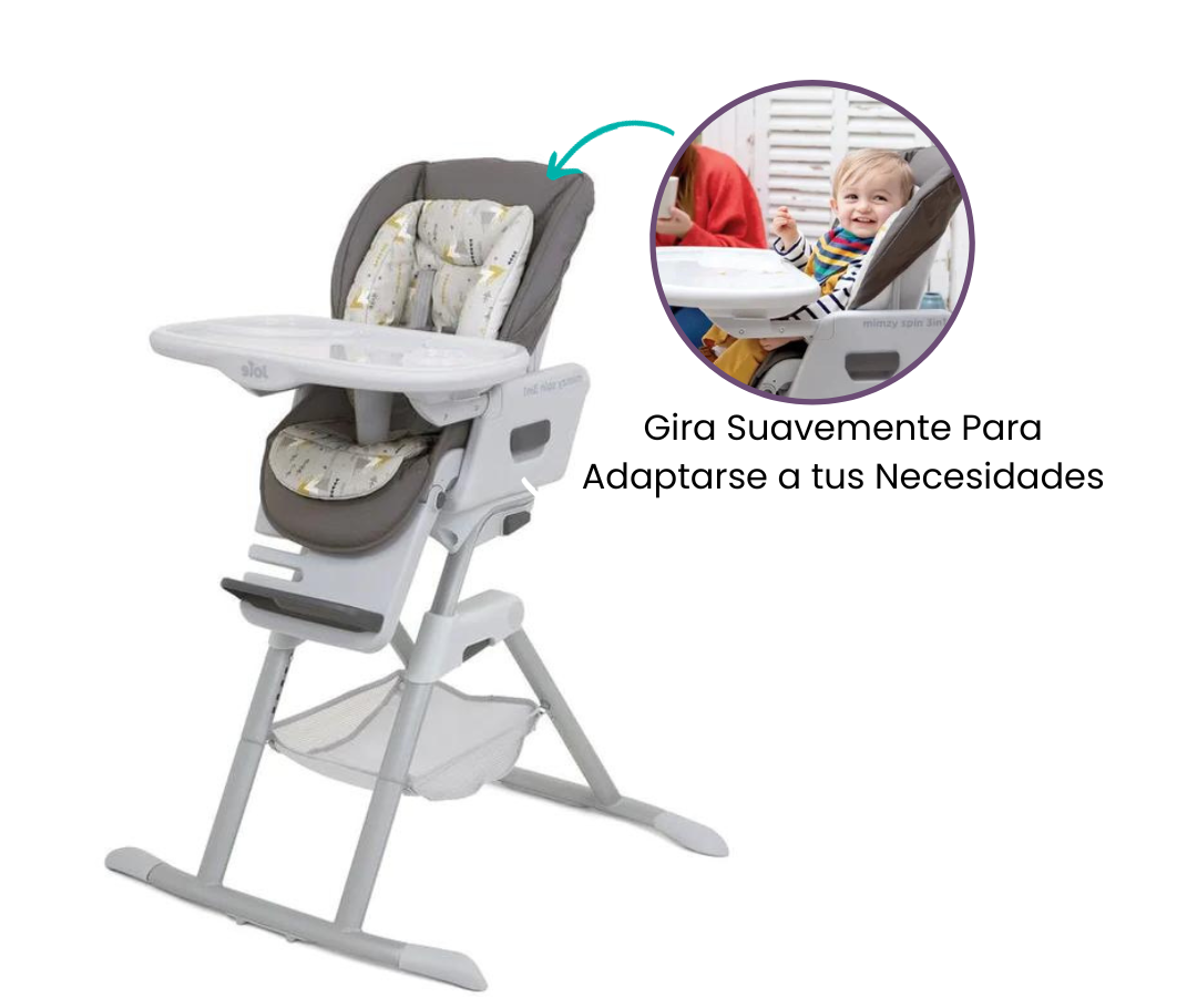 Con la MIMZY 360, la hora de comer se convierte en una aventura interactiva. Este ingenioso diseño no solo proporciona comodidad y seguridad, sino que también estimula la curiosidad de tu bebé al permitirle explorar su entorno desde diferentes ángulos. Además, su fácil ajuste en altura garantiza que tu bebé siempre esté a la altura adecuada para participar en la acción.