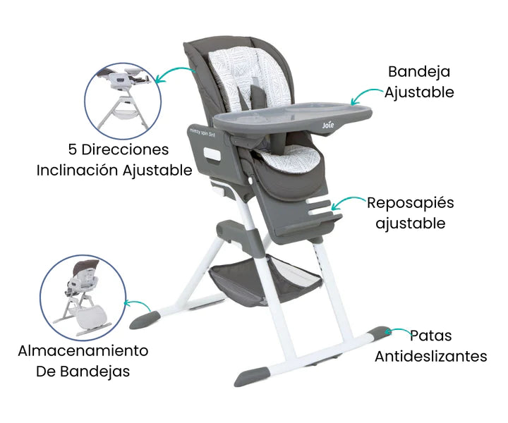 Descubre la trona Mimzy Spin 3en1, tu compañera desde el nacimiento. Su asiento giratorio de 360 grados proporciona una versatilidad única, permitiéndote mantener contacto visual con tu bebé en todo momento. Se adapta a las necesidades cambiantes de tu pequeño en cada etapa de su crecimiento.