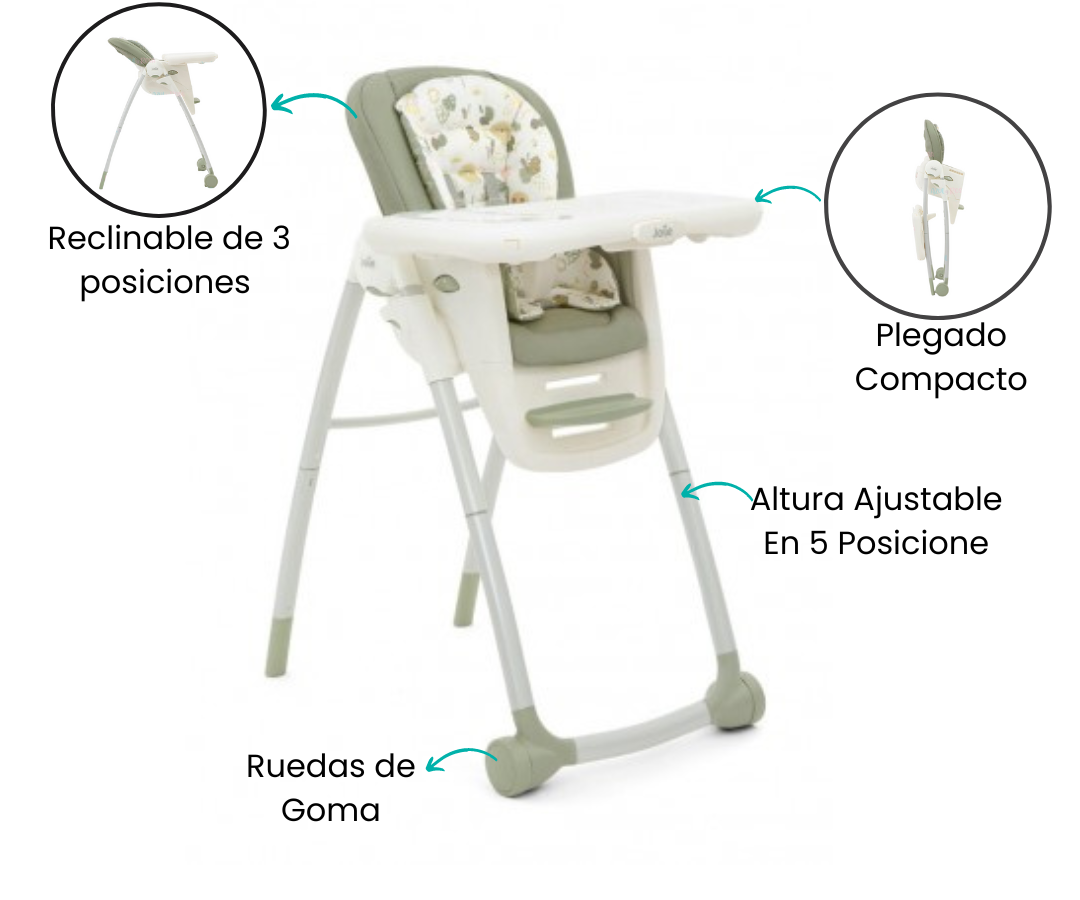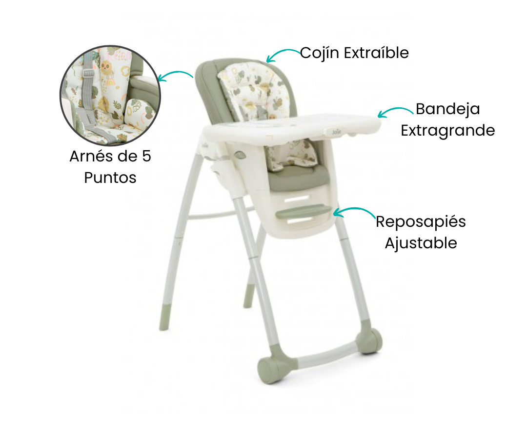 La hora de comer, jugar y participar en actividades se vuelve más versátil y emocionante con Multiply™ 6in1 de Joie. Este innovador diseño ha sido creado pensando en acompañar a tu pequeño desde la etapa de bebé hasta su desarrollo más grande. La silla ofrece seis modos distintos para adaptarse a las diversas necesidades de crecimiento de tu hijo.