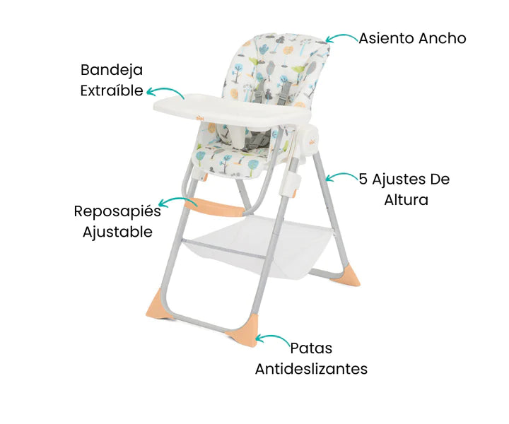 • 5 ajustes de altura para el modo de trona o silla de mesa.