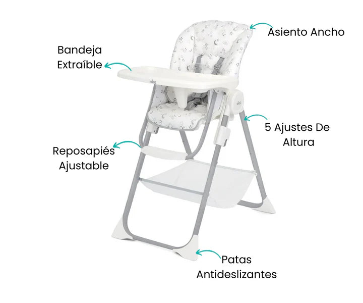 Experimenta la fusión perfecta de practicidad y conveniencia con nuestra silla alta innovadora. Su diseño permite que el asiento y el marco se plieguen de manera compacta, garantizando un almacenamiento sin complicaciones. Lo destacado es que, al plegarse, la silla se sostiene por sí sola, añadiendo facilidad a la organización del espacio. Esta solución inteligente es ideal para hogares con limitaciones de espacio.