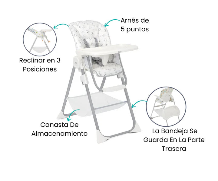 La Silla de Comedor para Bebé Joie Mimzy destacada por su diseño sumamente ergonómico, pensado para brindar comodidad a los bebés desde los 6 meses hasta los 15kg