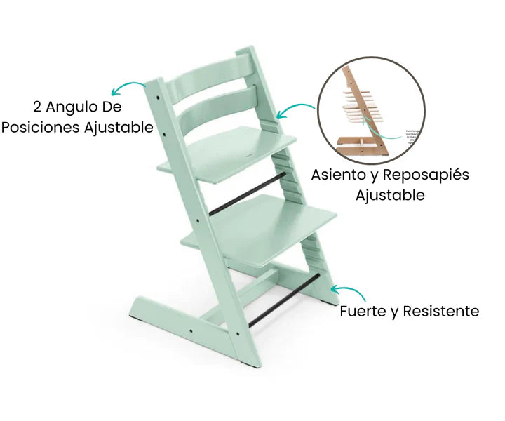 La Silla de Comer Tripp Trapp en Hazy Verde es mucho más que una simple silla; es una inversión inteligente en la comodidad, la seguridad y la cercanía familiar en las comidas. Proporciona un asiento ergonómico a medida que tu hijo crece, y su diseño versátil se adapta perfectamente a tu mesa de comedor. Es la elección ideal para familias que valoran la calidad y el diseño en su vida cotidiana.