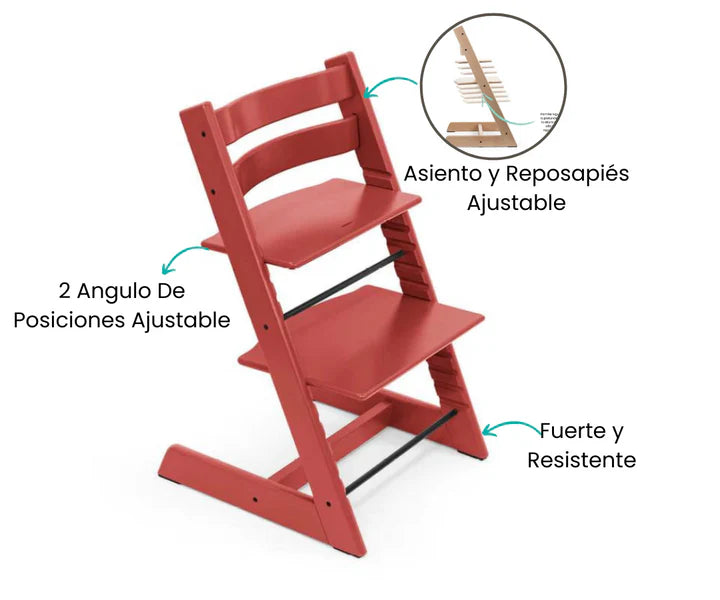 La Silla de Comer Tripp Trapp en Warm Red es mucho más que una simple silla; es una inversión inteligente en la comodidad, la seguridad y la cercanía familiar en las comidas. Proporciona un asiento ergonómico a medida que tu hijo crece, y su diseño versátil se adapta perfectamente a tu mesa de comedor. Es la elección ideal para familias que valoran la calidad y el diseño en su vida cotidiana.