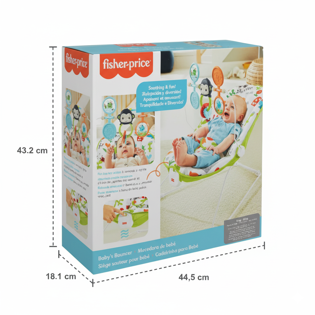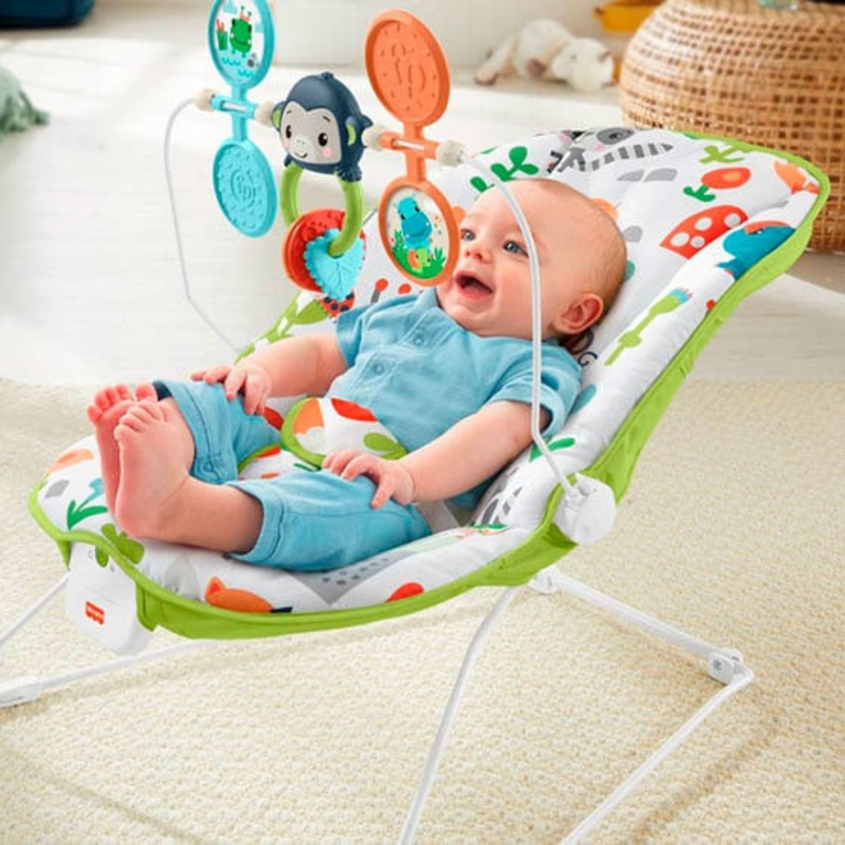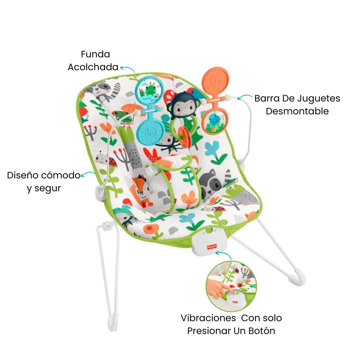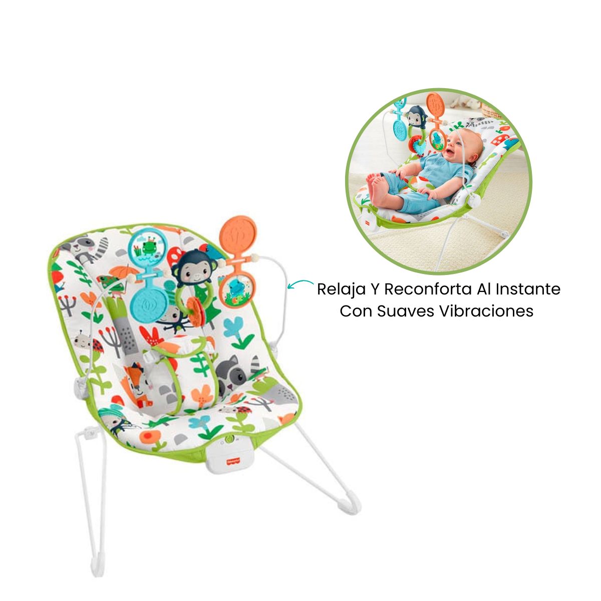 La Silla Amiguitos Selva de Fisher-Price está diseñada para acompañar a tu bebé en sus momentos de descanso y juego, ofreciendo una experiencia relajante y estimulante a la vez. Su estructura permite un movimiento natural de mecido, respondiendo suavemente a los movimientos del bebé sin limitar su libertad. Ideal desde el nacimiento, esta silla ayuda a calmar al pequeño mientras le brinda un espacio cómodo y seguro para observar el entorno y disfrutar de sus primeros descubrimientos.