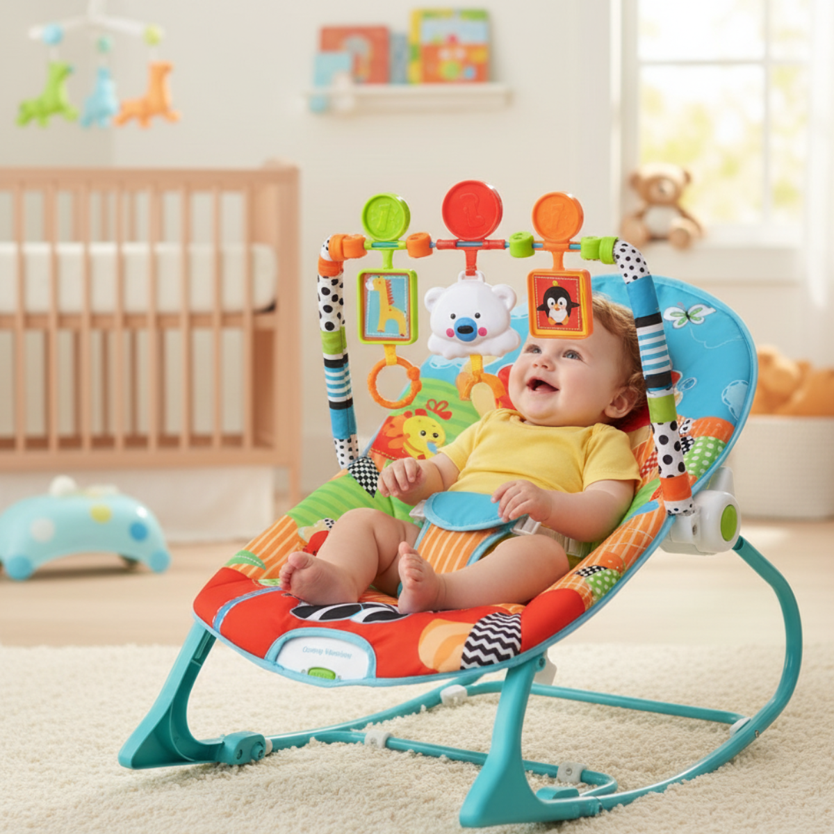La mecedora para bebé ha sido diseñada para ofrecer un espacio acogedor, seguro y relajante donde tu pequeño pueda descansar, jugar o simplemente observar su entorno. Su diseño ergonómico, con asiento acolchado e inclinación ajustable, asegura el soporte adecuado para el cuerpo del bebé, brindándole una sensación de suavidad y bienestar. Ideal desde los primeros días de vida, esta mecedora se convierte en el refugio perfecto para momentos de calma y descanso, ayudando a los padres a mantener la rutina con comodidad y confianza.