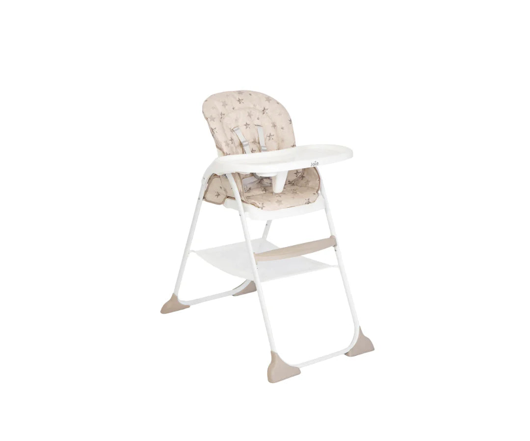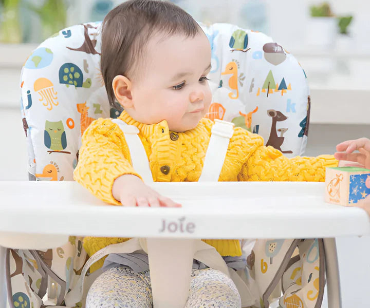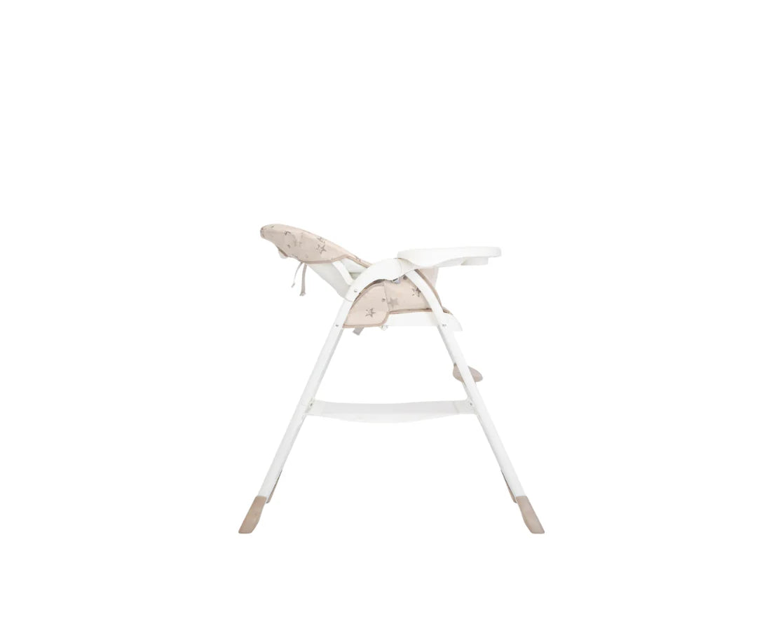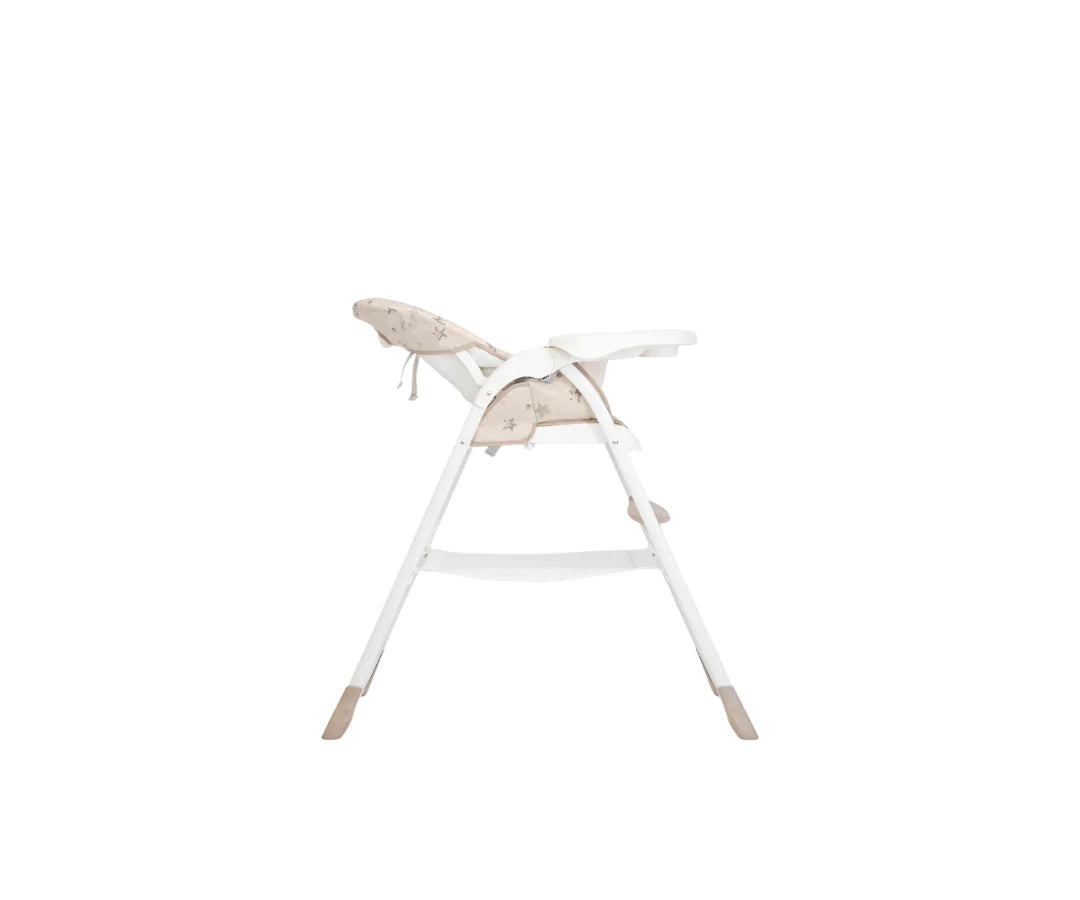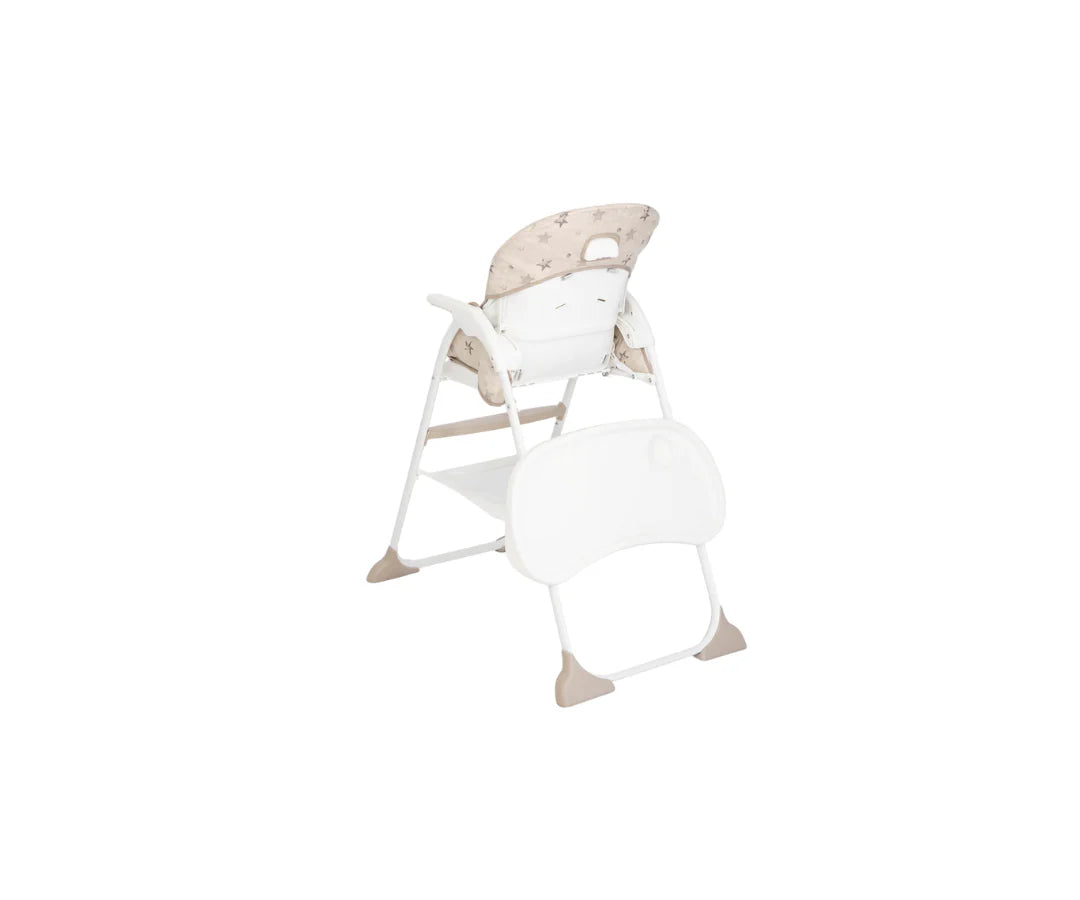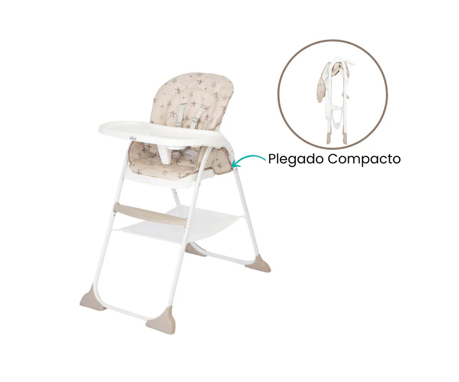 Este asiento alto/mesa ofrece respaldo reclinable con tres posiciones para apoyar al bebé al comenzar con comida sólida. El arnés de cinco puntos con protecciones asegura cuerpo y hombros sin generar molestias. Incluye bandeja ajustable en profundidad para adaptarse al crecimiento, y tapizado removible y fácil de limpiar tras cada comida. Su estructura liviana y diseño compacto facilitan moverlo o guardarlo sin ocupar mucho espacio.
