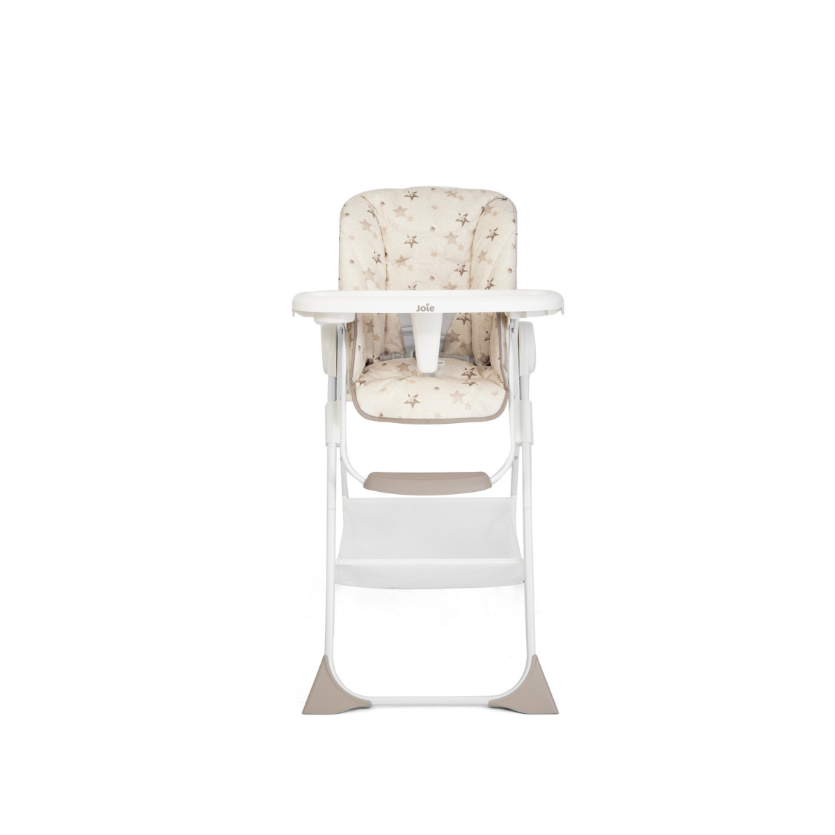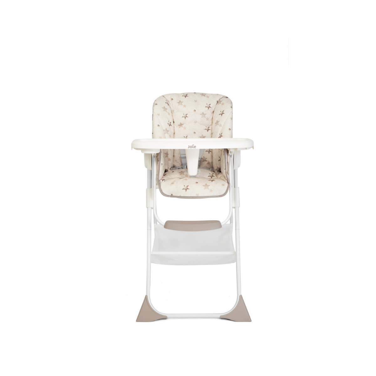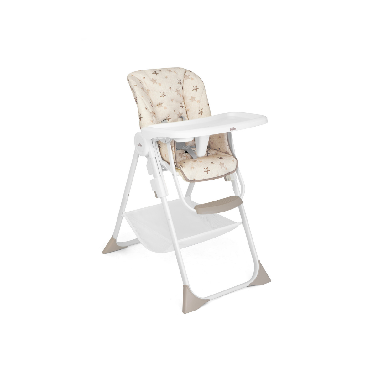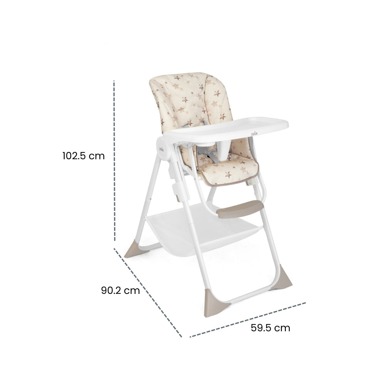 Este asiento alto/mesa ofrece respaldo reclinable con tres posiciones para apoyar al bebé al comenzar con comida sólida. El arnés de cinco puntos con protecciones asegura cuerpo y hombros sin generar molestias. Incluye bandeja ajustable en profundidad para adaptarse al crecimiento, y tapizado removible y fácil de limpiar tras cada comida. Su estructura liviana y diseño compacto facilitan moverlo o guardarlo sin ocupar mucho espacio.