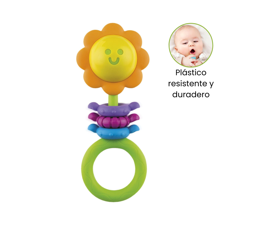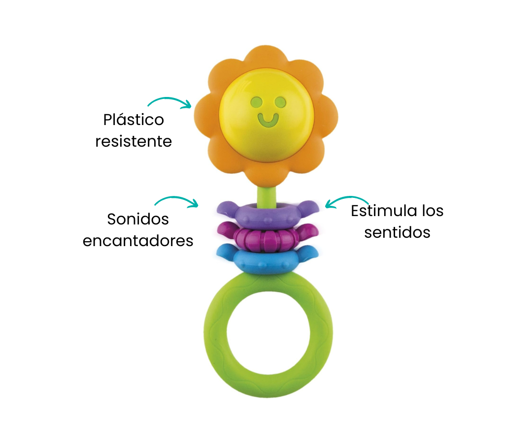 El Sonajero Sujetador Flor Multicolor, es el juguete perfecto para estimular y divertir a tu bebé. Con su diseño de flor colorida, este sonajero captará la atención de tu pequeño y le brindará horas de entretenimiento.