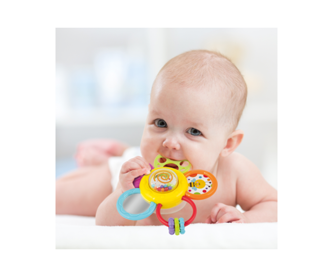 Explora los juguetes para bebés que estimulan los sentidos y fomentan el desarrollo. Desde la encantadora Bola de cascabel, que produce sonidos mágicos con cada movimiento, hasta el Apilador de pasteles con cinco anillos coloridos y una base oscilante que promueve la coordinación mano-ojo. Estos juguetes ofrecen una experiencia sensorial envolvente, alentando a los bebés a explorar, descubrir y desarrollar habilidades motoras y cognitivas de manera divertida y segura.