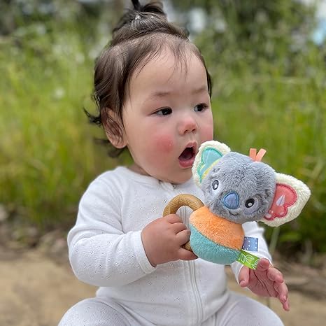 Sonajero suave, para agarre sensorial, comodidad de dentición y aventuras australianas.