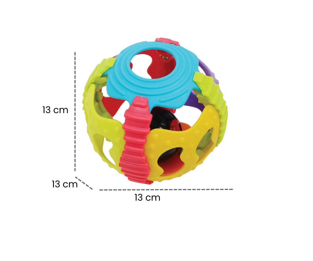 La Shake Rattle and Roll Ball proporciona una experiencia sensorial fascinante con diversas texturas y colores vibrantes. Su diseño flexible permite que la bola se doble, mientras que una pequeña bola interior emite sonidos atractivos al agitarla, estimulando el desarrollo auditivo del bebé. Este juguete versátil no solo ofrece un estímulo auditivo, sino que también es perfecto para practicar habilidades motoras gruesas mediante el agite y el agarre de la pelota. Una herramienta divertida y educativa que contribuye al crecimiento integral de tu pequeño."