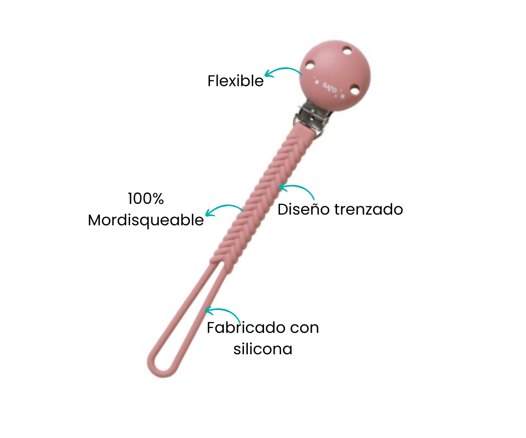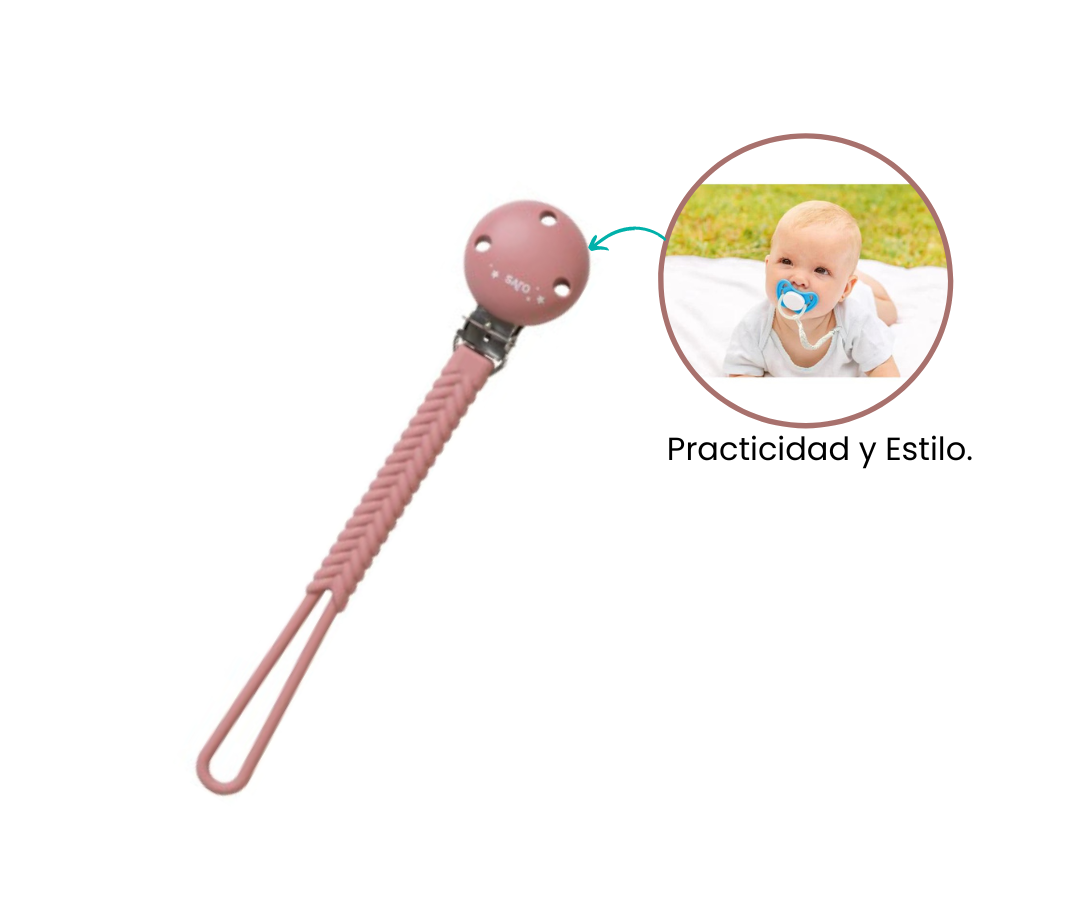 El innovador soporte para chupete, diseñado para un acceso rápido y seguro al chupete de su bebé, despidiéndose de las preocupaciones de pérdida o caídas accidentales. Confeccionado con un elegante diseño trenzado, destaca por su calidad y durabilidad superiores, construido para soportar el desgaste diario con facilidad. Mantenga la higiene sin esfuerzo, ya que es muy fácil de limpiar.