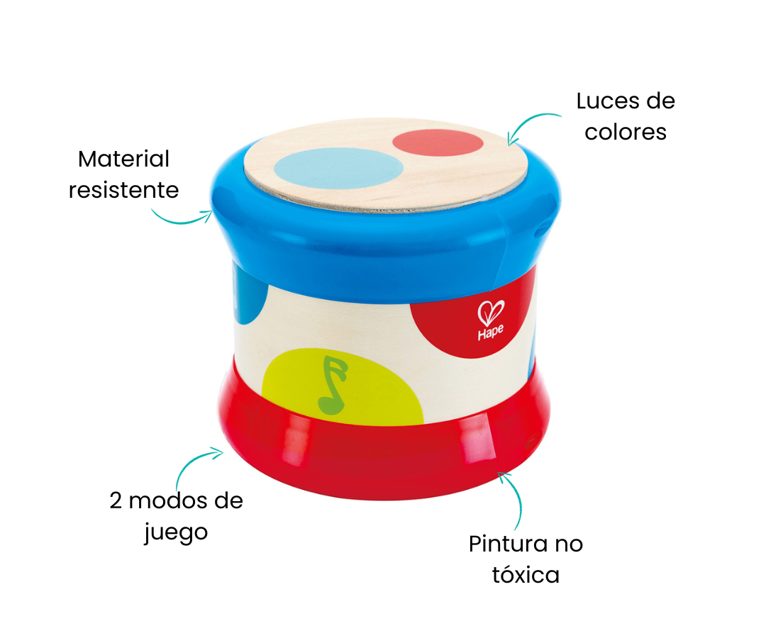 Aprende ritmo y diferentes sonidos: mientras los pequeños accesorios de la alegría aprenden a tocar el tambor, aprenden a reconocer diferentes sonidos y ritmos; el tambor toca melodías originales