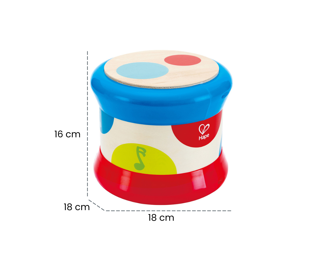 Los niños pequeños seguramente querrán probar todos los tipos de juego de este tambor; por eso hemos desarrollado un tambor con el que todo es posible; cuando el juguete se coloca en posición vertical, el niño puede tamborilear sobre él, y cada círculo de color produce un tono diferente e ilumina diferentes luces de colores; Cuando se hace rodar el tambor, emite efectos de luz y reproduce música automáticamente.