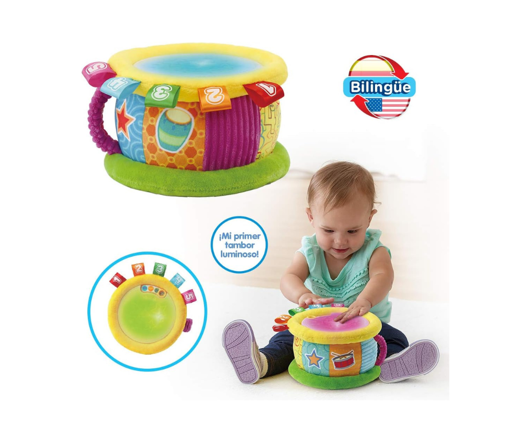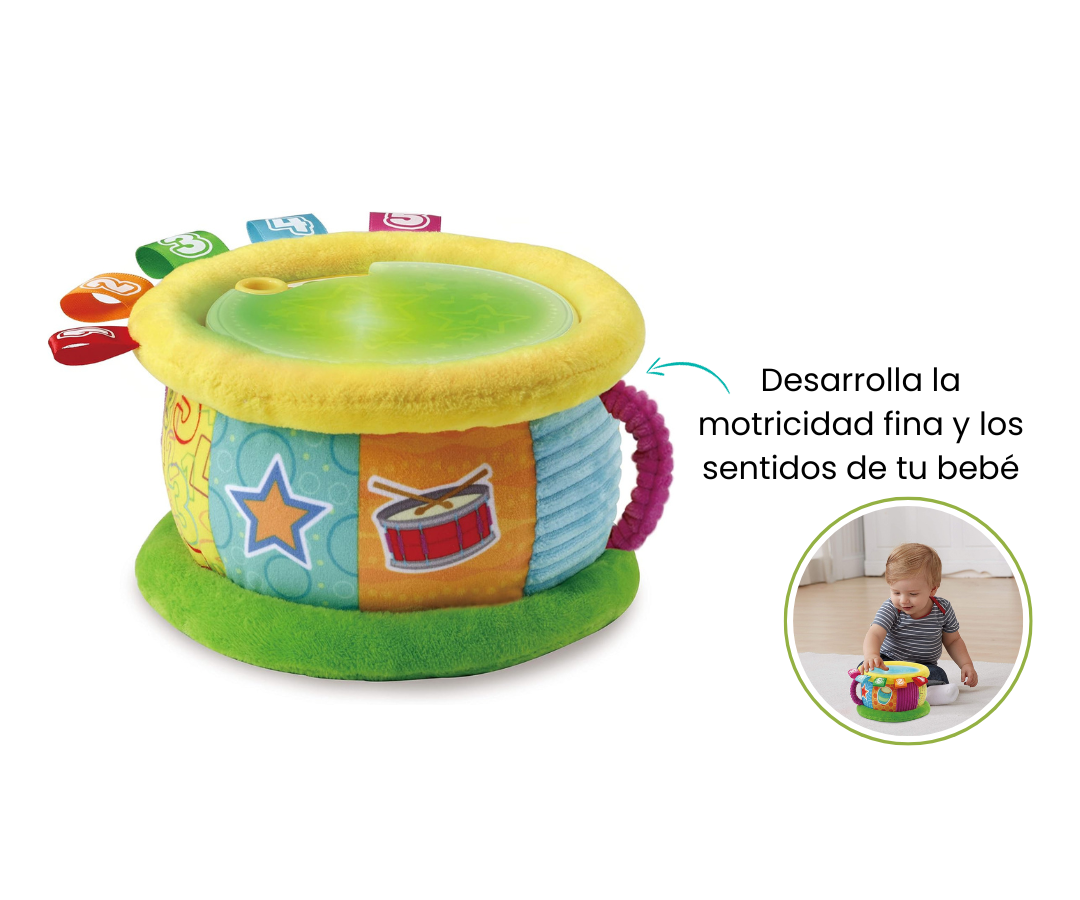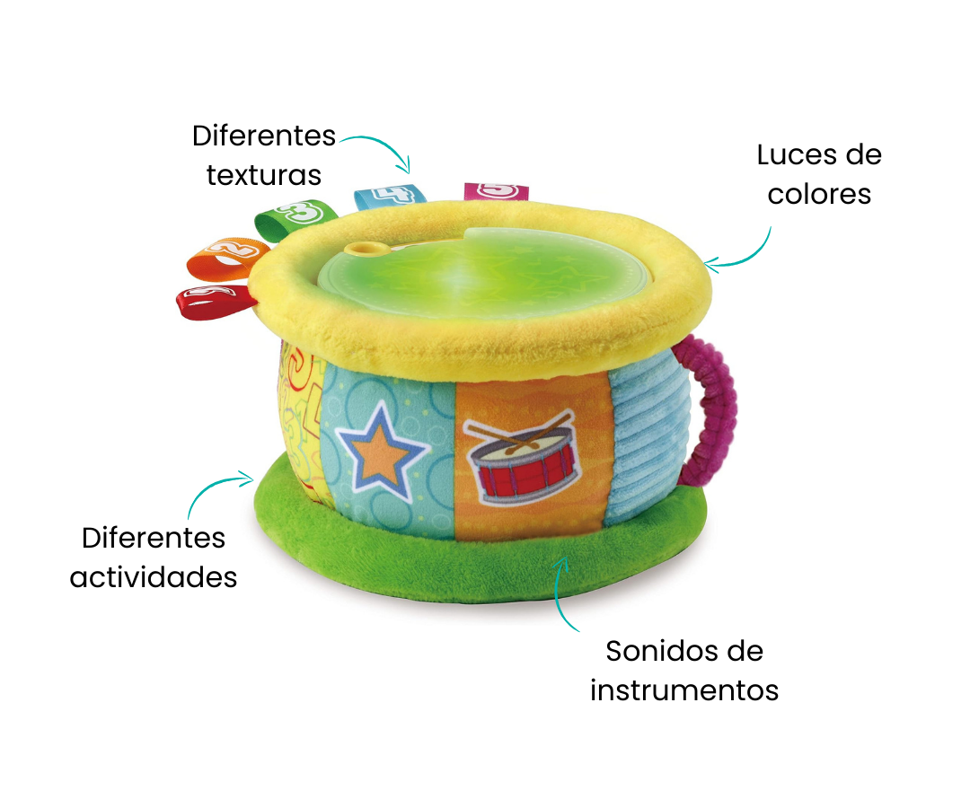 Con su selector de juegos versátil, el Tambor Luces Mágicas permite elegir entre español, inglés, juego libre o música, adaptándose a las preferencias y necesidades de tu bebé. ¡Cada golpe en el tambor desata melodías encantadoras y luces mágicas que cautivan la atención y estimulan los sentidos!
